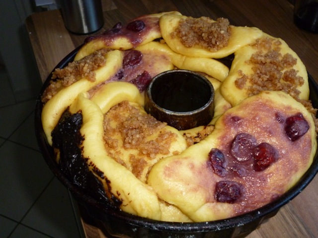 Ninive from ninivepisces participated with this recipe for a sweet, red, brown and black coloured Alt-Wiener Patzerlguglhupf.