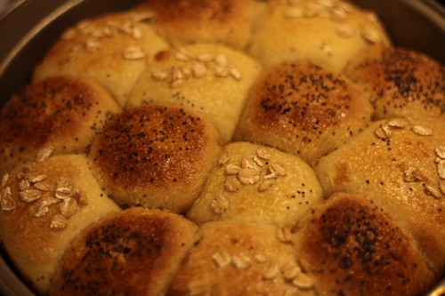 Cathy from bread experience finally found the time to bake these brown and white rolls with poppy seeds and spelt flakes as a party bread for her christmas dinner.
