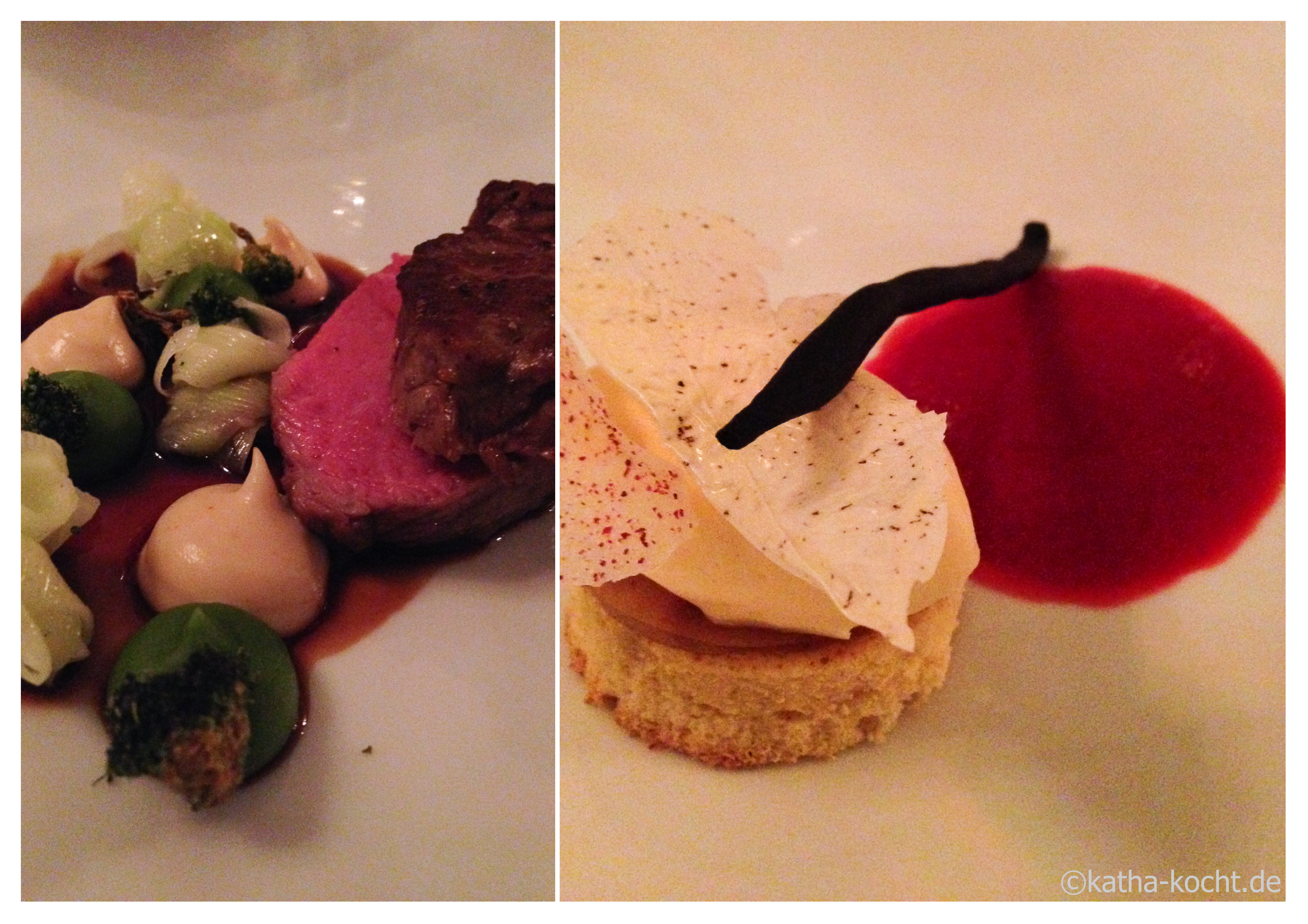 Als zweiten Gang gibt es hier wieder ein Steak, pommersches Roastbeef mit drei Varianten vom Brokkoli, hellem Miso und etwas Jus. Wir sind uns aber einig – das Entrecôte hat uns einen Tick besser geschmeckt.
