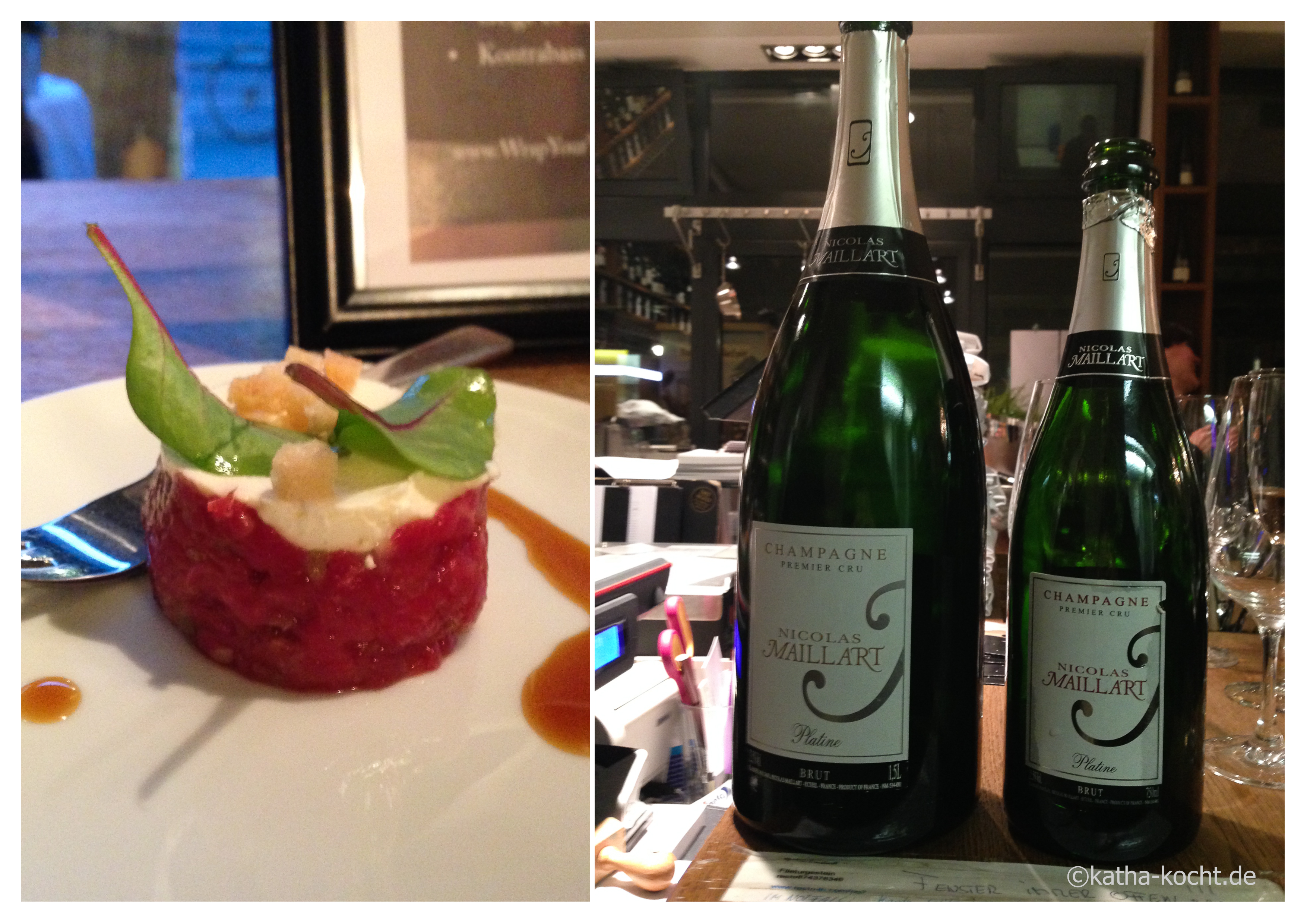 An einem normalen Tag finden in diesem Restaurant 27 Gäste einen Platz – für diesen Abend ist der Raum wie leer gefegt, wir feiern eine Stehparty! Es stehen bereits feine Wurst- und Schinkenhäppchen und ein leckeres, intensiv nach Zimt duftendes Brot bereit. Während immer mehr Gäste eintrudeln bewundern wir die Fleischauslage und sind gespannt was uns an diesem Abend erwartet.