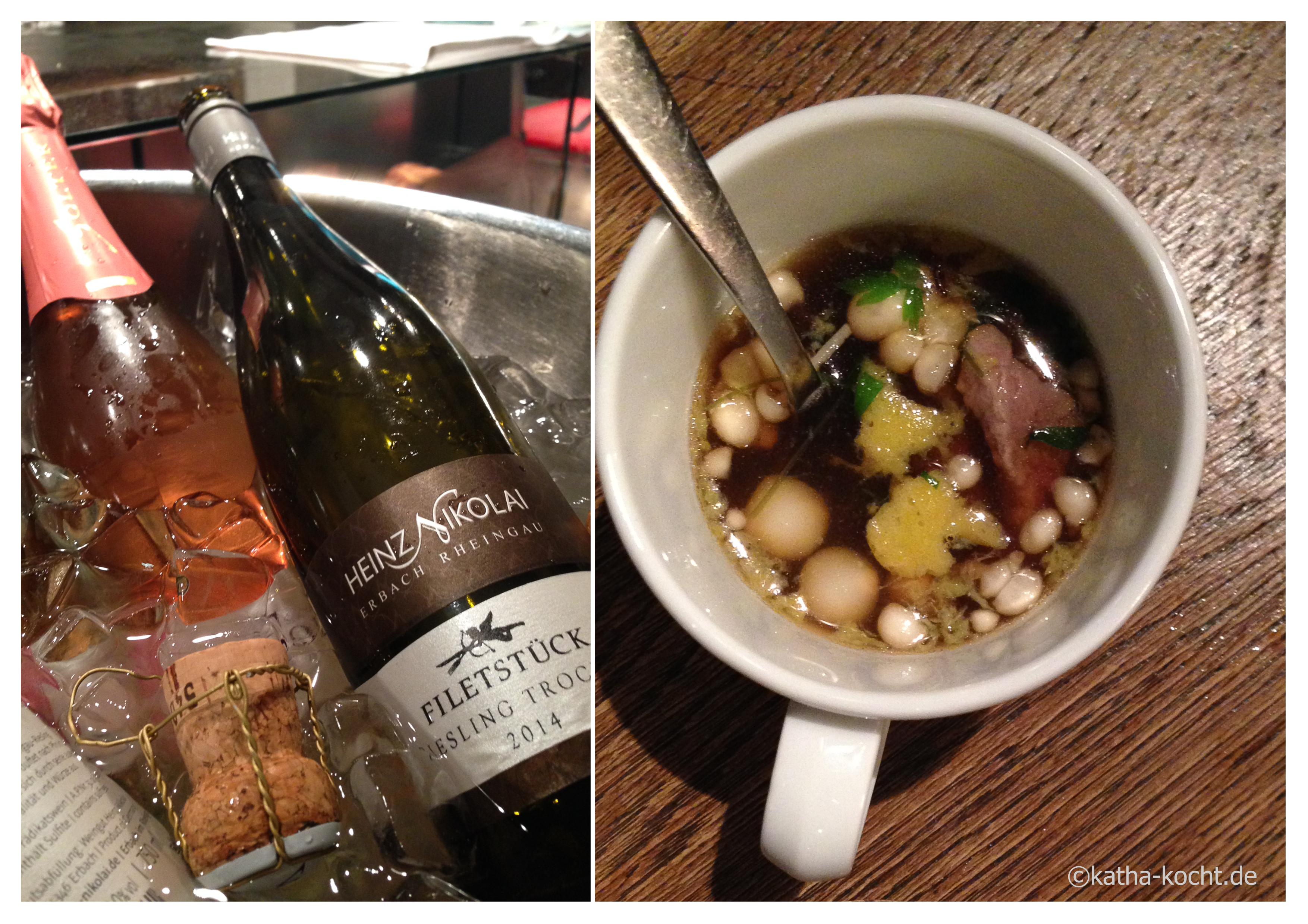 Als zweiten Gang gab es einen kleinen „Hot Pot“ – eine in der Tasse servierte, asiatische Rinderkraftbrühe mit Rinderfilet, Enoki Pilzen, Karotte, Zitronengras und Koriander. Sehr leicht und obwohl das Rinderfilet bereits in der Suppe war, und nicht wie sonst extra serviert wurde, war es noch super zart.