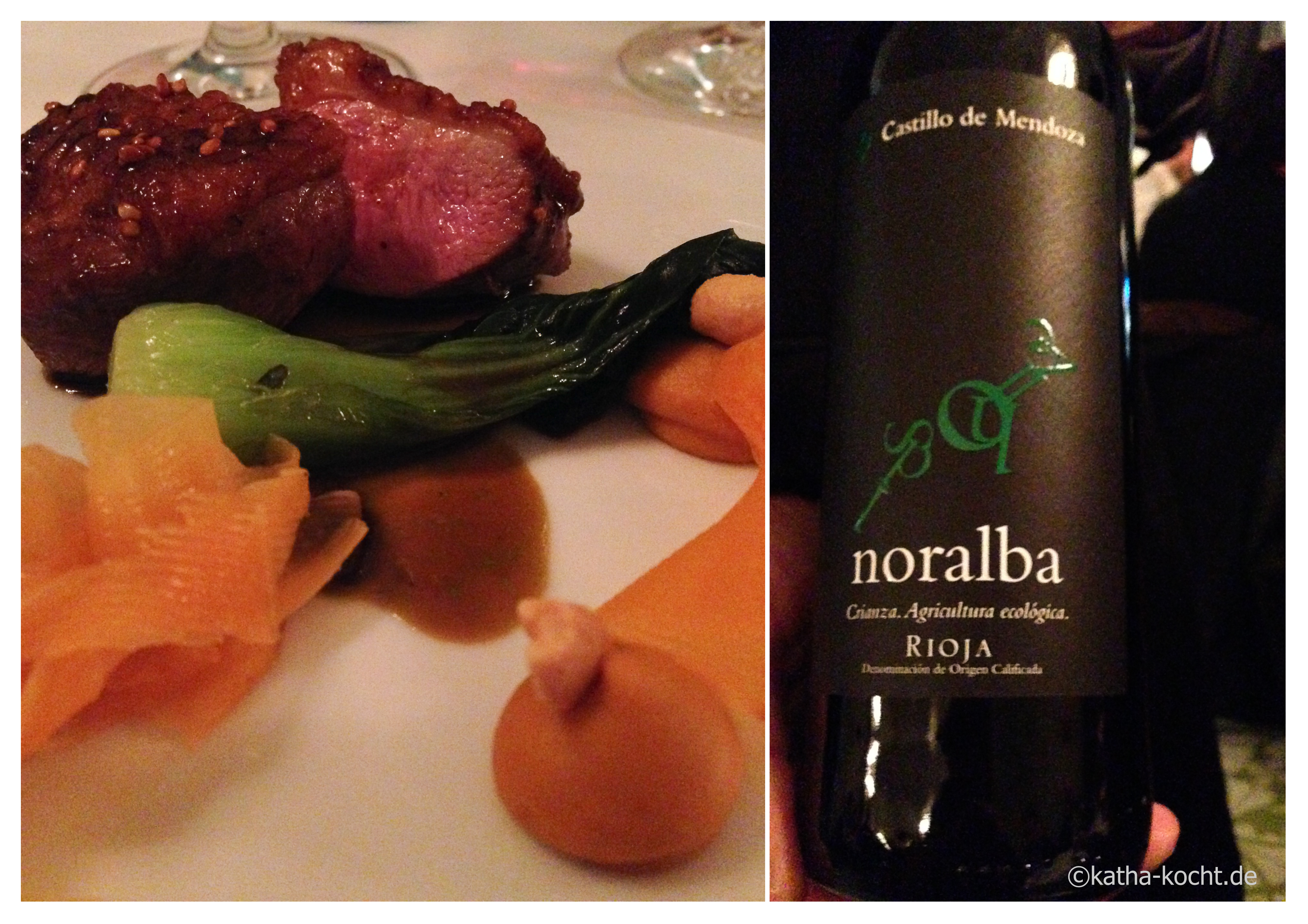 Die letzte Station unserer kulinarischen Reise durch Berlin ist das Gourmetstück. Küchenchef Sascha Ludwig hat seinen Platz am Herd für diesen Abend dem Stuttgarter Sternekoch Marco Akuzun überlassen. Der scheint kein Mann vieler Worte zu sein und verschwindet nach kurzer Begrüßung wieder in der Küche, um dort die zarte, asiatisch inspirierte Entenbrust mit Kürbis, Pak Choi und Erdnussmus zu zaubern. Eine Kombination, die mir extrem gut gefallen hat. Dazu schenkt Sommelier Jan Buhrmann einen 2013er Rioja – einen „Noralba“ Crianza aus.