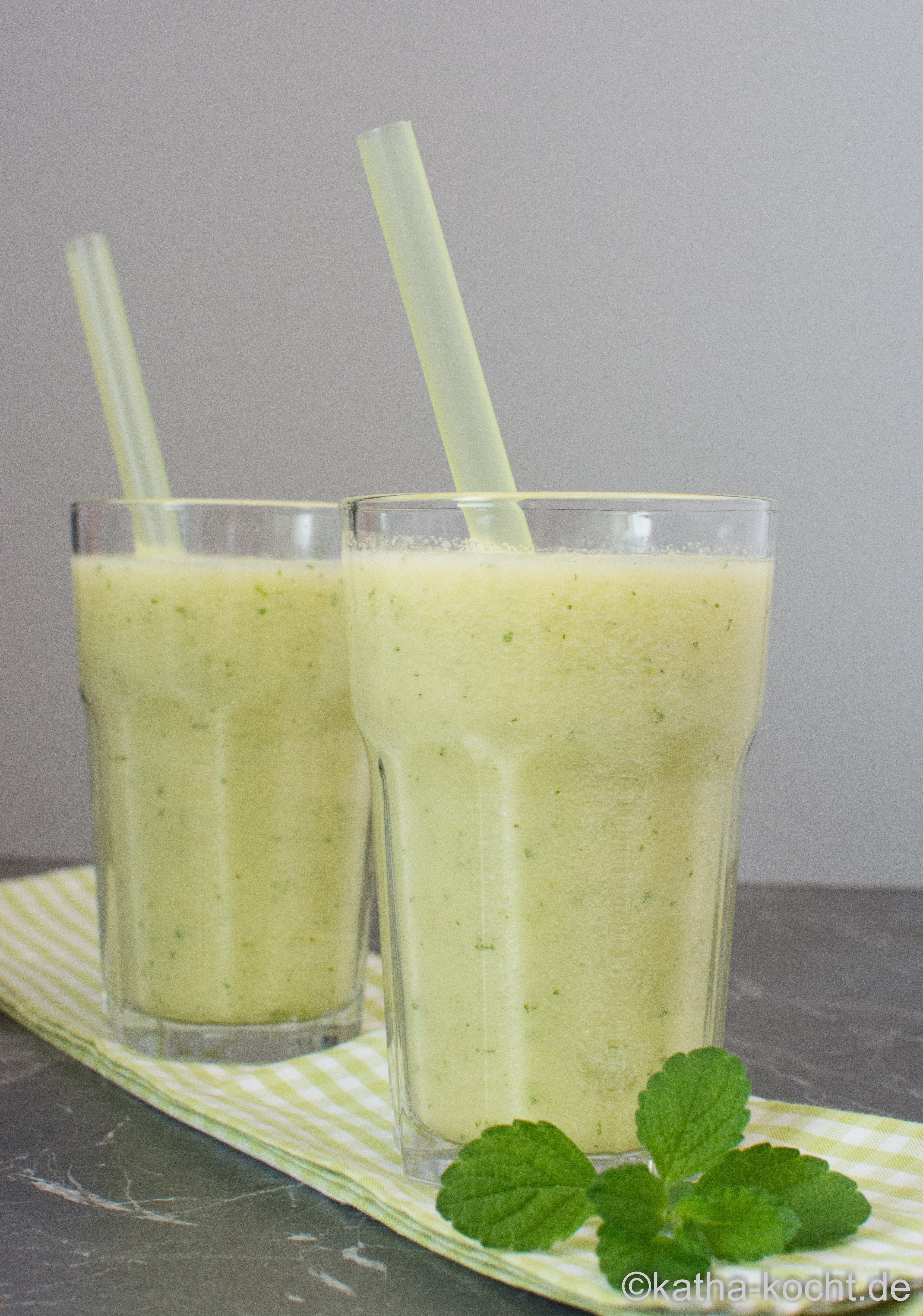 Nachdem ich meine Zitronenmelisse für den Herbst und den Sirup eigentlich schon komplett zurück gestutzt habe dachte sie sich wohl – „na dann kann ich ja nochmal für eine zweite Runde austreiben.“ Also wächst sie wieder munter fröhlich vor sich hin und ich pflücke mir noch das eine oder andere Blättchen für Salat oder eben für diesen Smoothie. Der ist übrigens ganz flott gemacht und schmeckt wunderbar sommerlich!