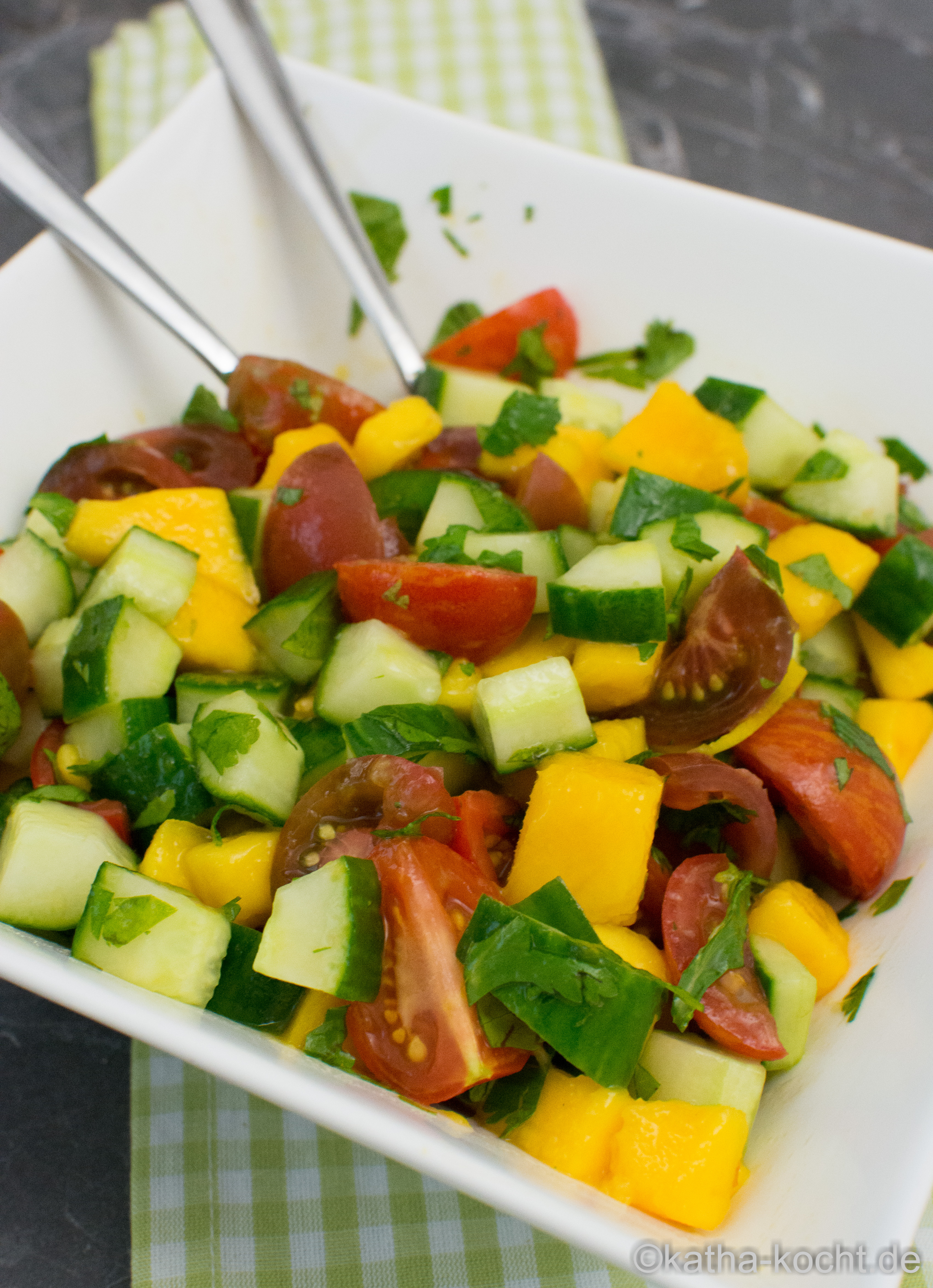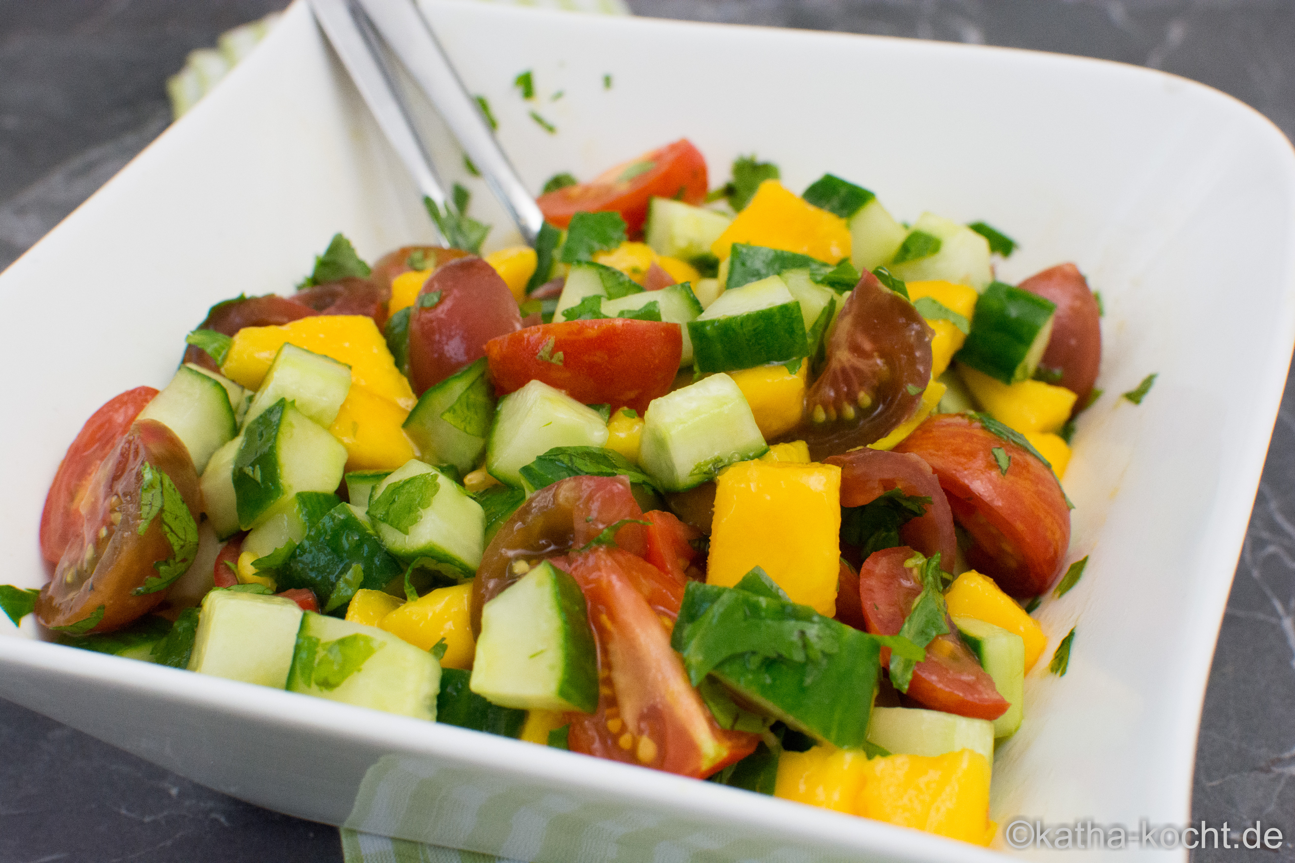 Kategorie: Salate Stichworte: gurke, koriander, mango, tomaten