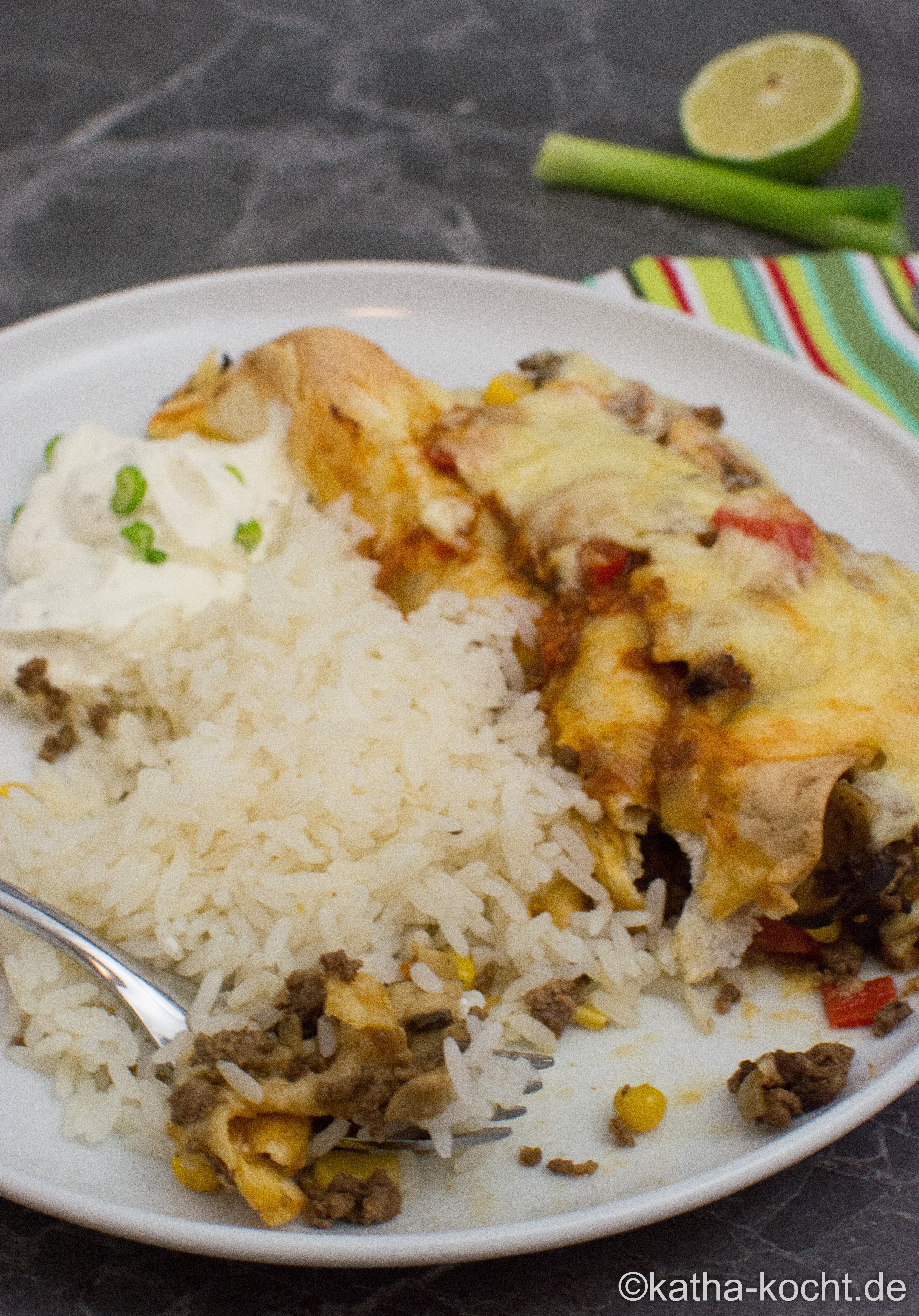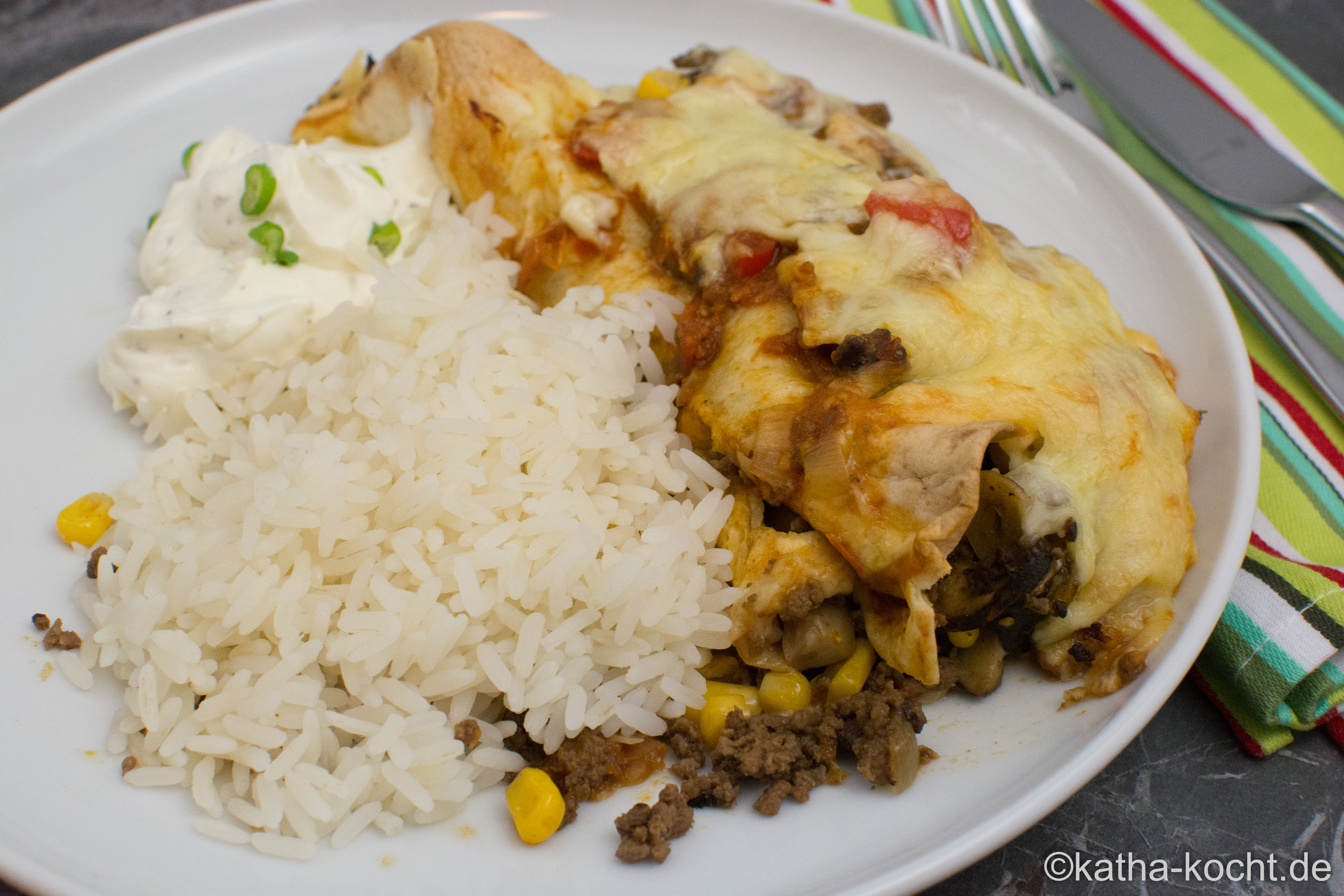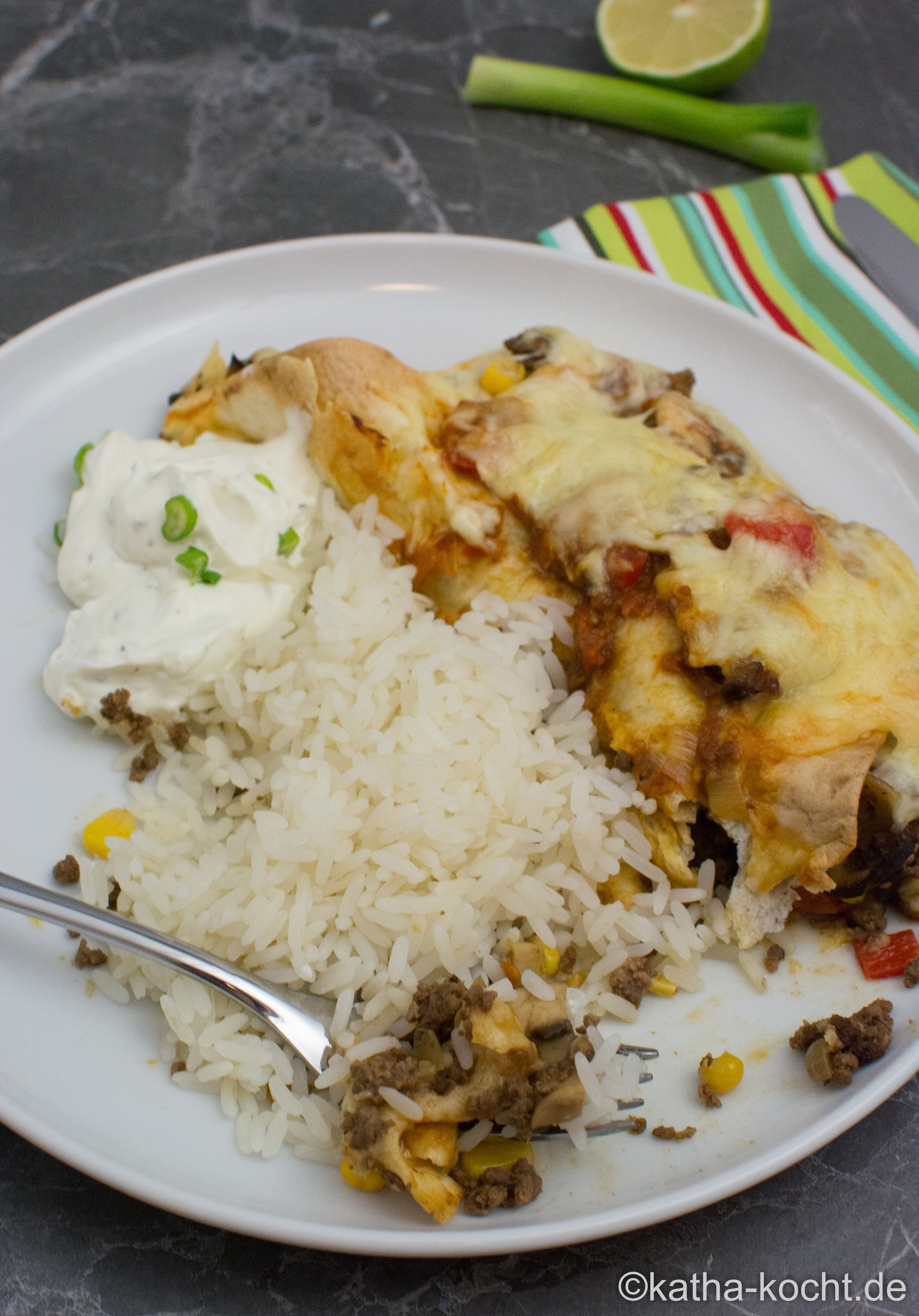 Burritos mit Reis und Sourcream