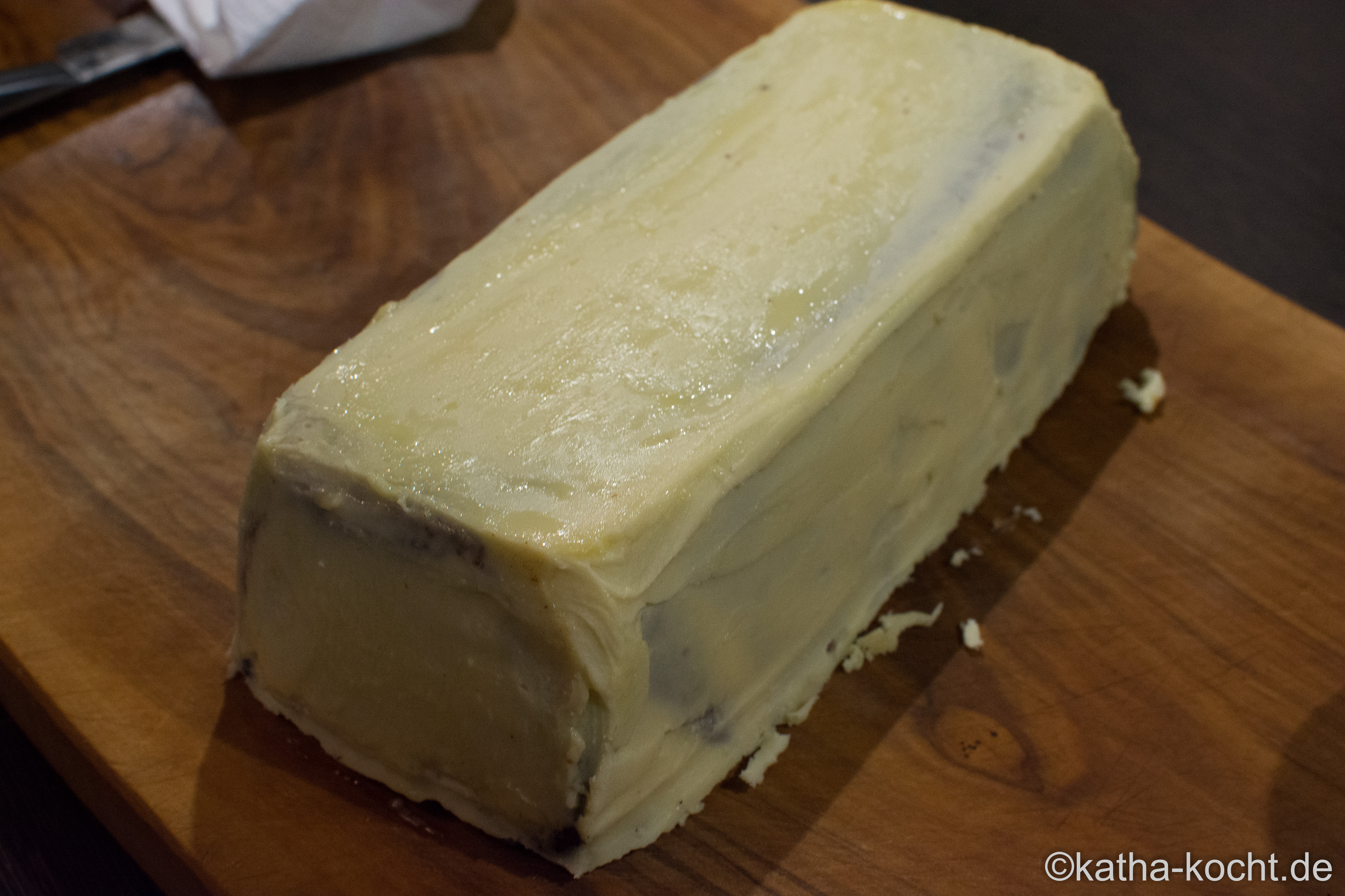 Den Kuchen mit der Ganache bestreichen und mindestens 1 Stunde im Kühlschrank etwas aushärten lassen. Mit einer zweiten, etwas dickeren Schicht Ganache bestreichen und wieder 1-2 Stunden aushärten lassen. Ein Glas mit heißem Wasser füllen, ein langes Messer darin warm werden lassen und die Unebenheiten glatt streichen.