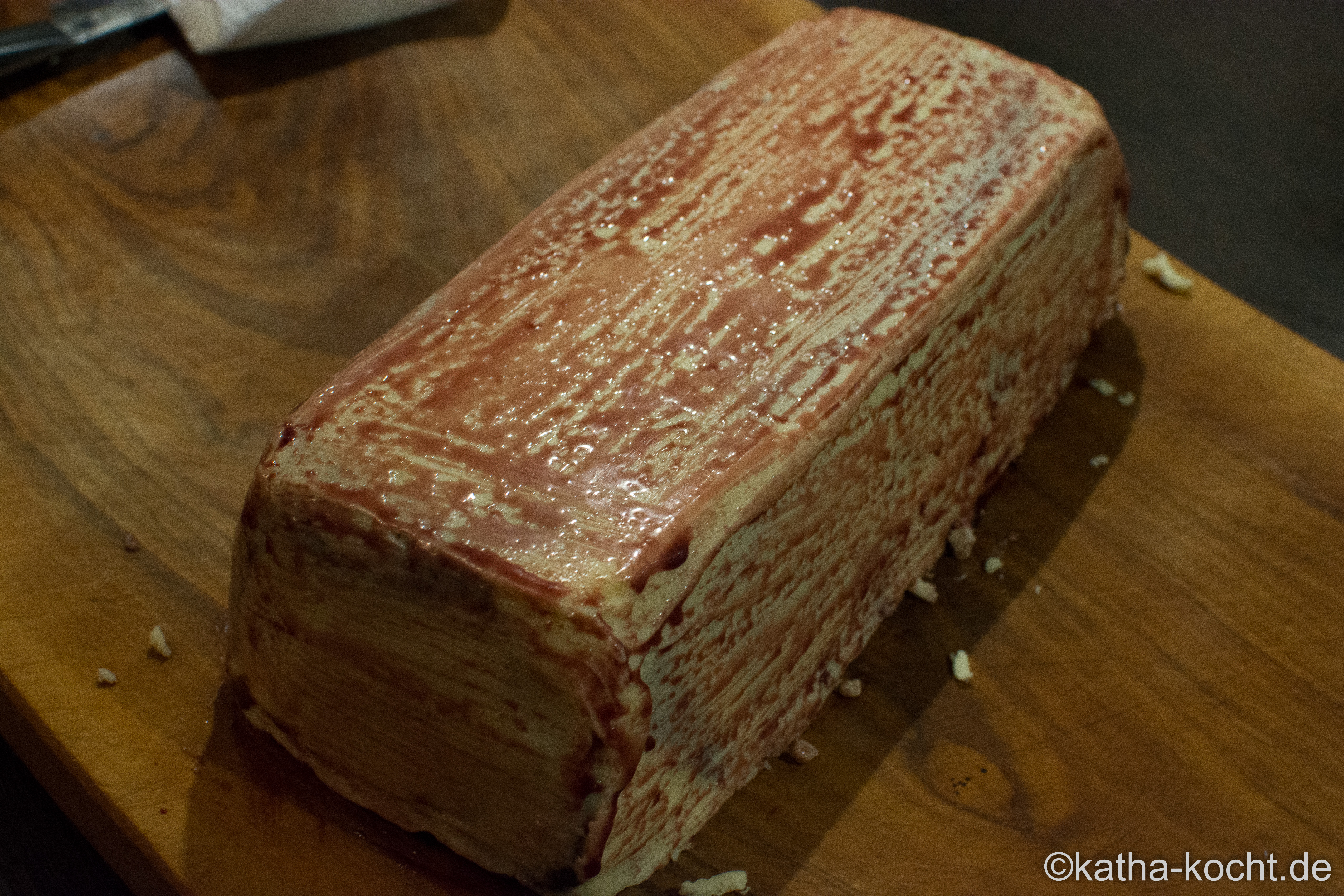 Den Kuchen nochmal für 1-2 Stunden (oder über Nacht) in den Kühlschrank stellen, dann kann er auch schon angeschnitten werden.