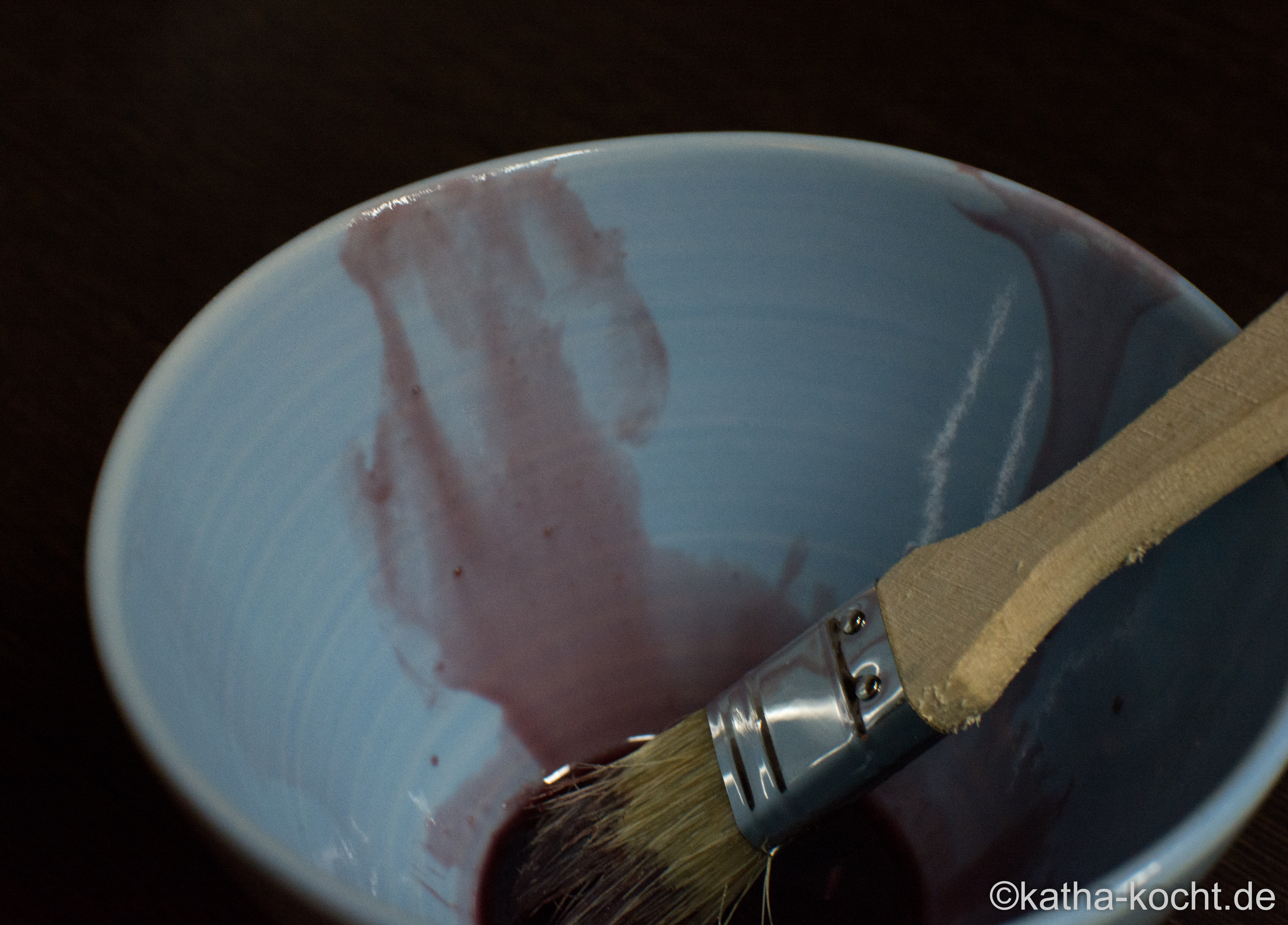 Den Sirup mit dem Pinsel am Rand der Schüssel etwas hochziehen…