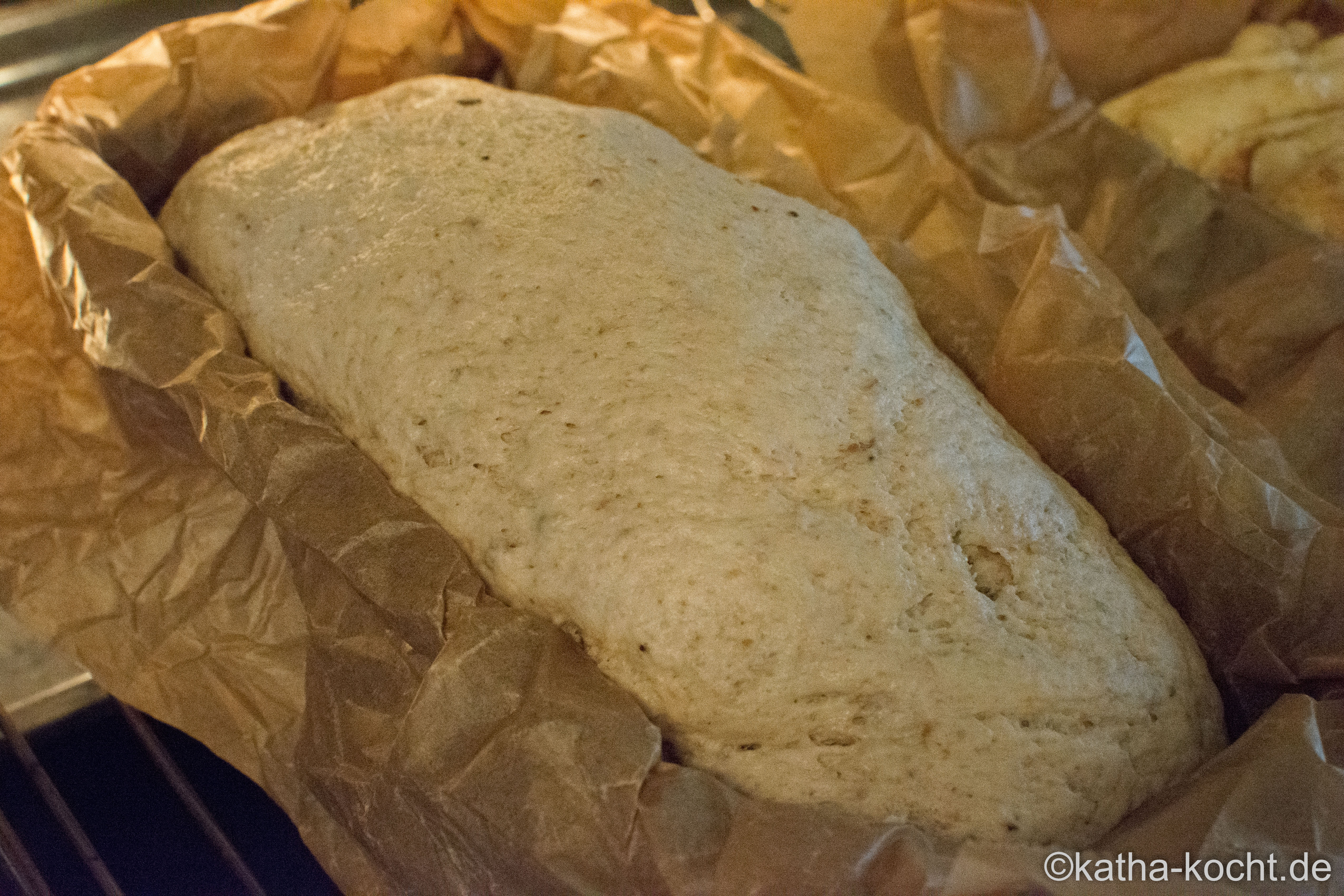 Dann wandert er nochmal bei 40°C im Gärmodus in den Backofen.