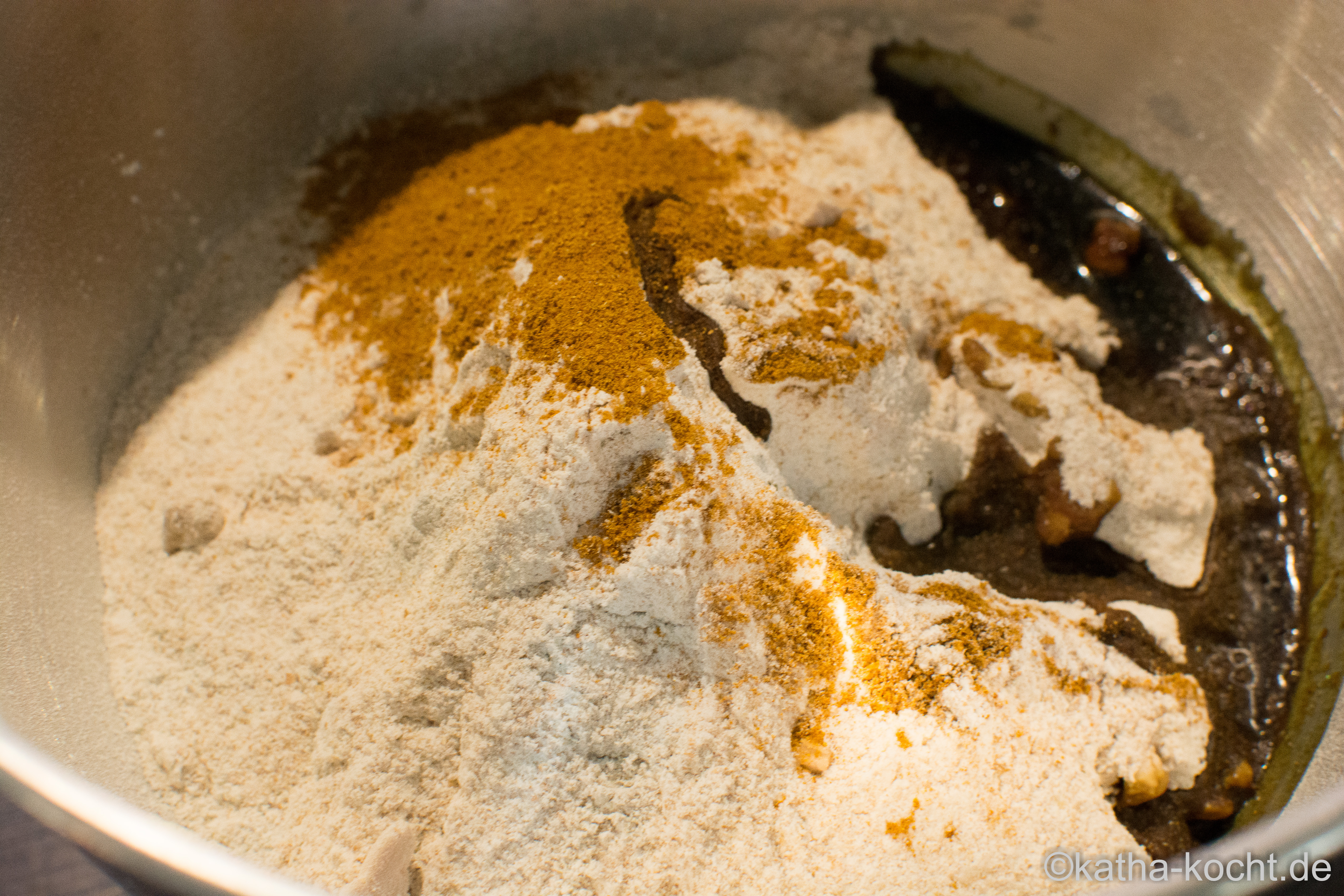 Die aufgequollenen Körner samt Wasser mit den restlichen Zutaten in die Küchenmaschine geben…