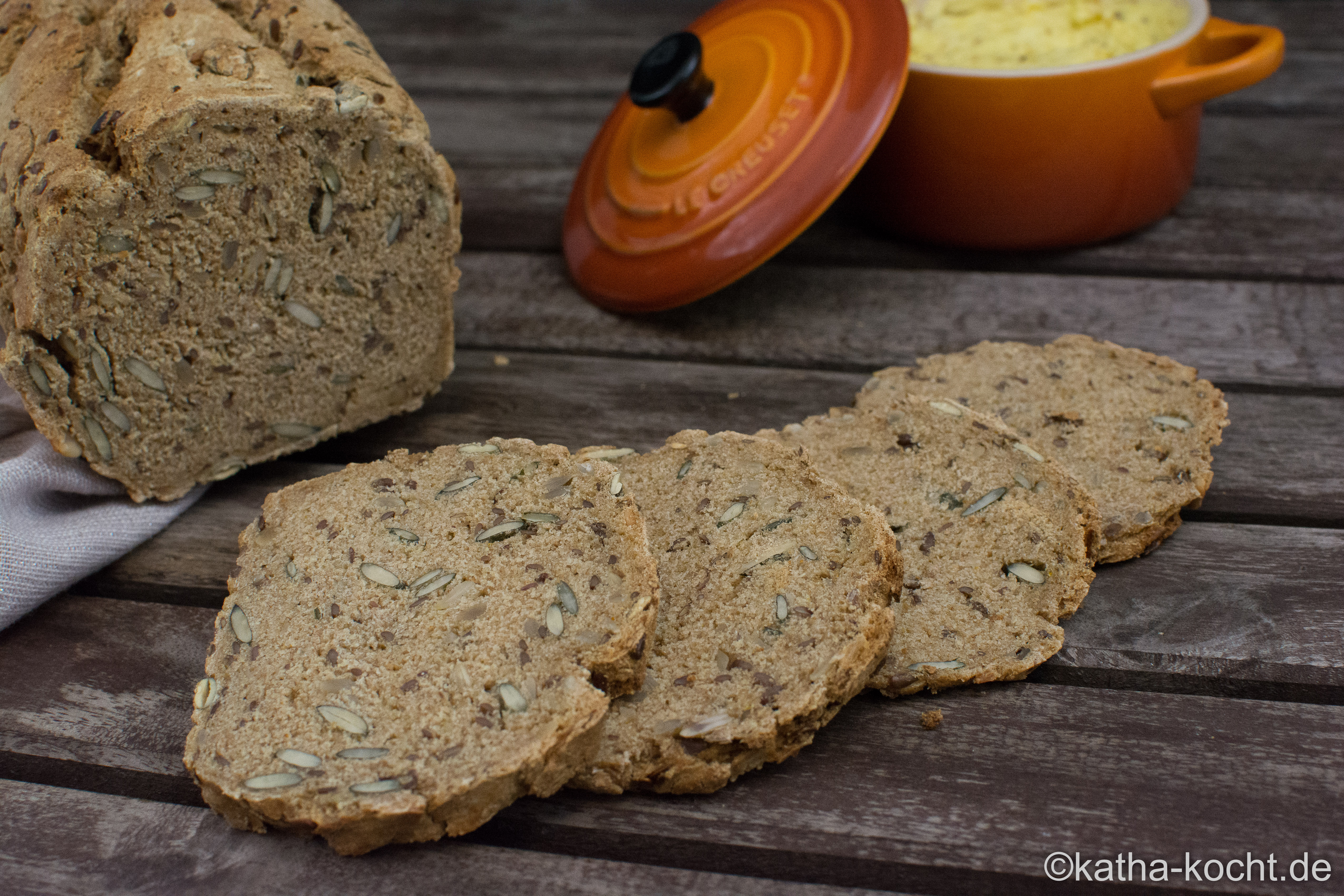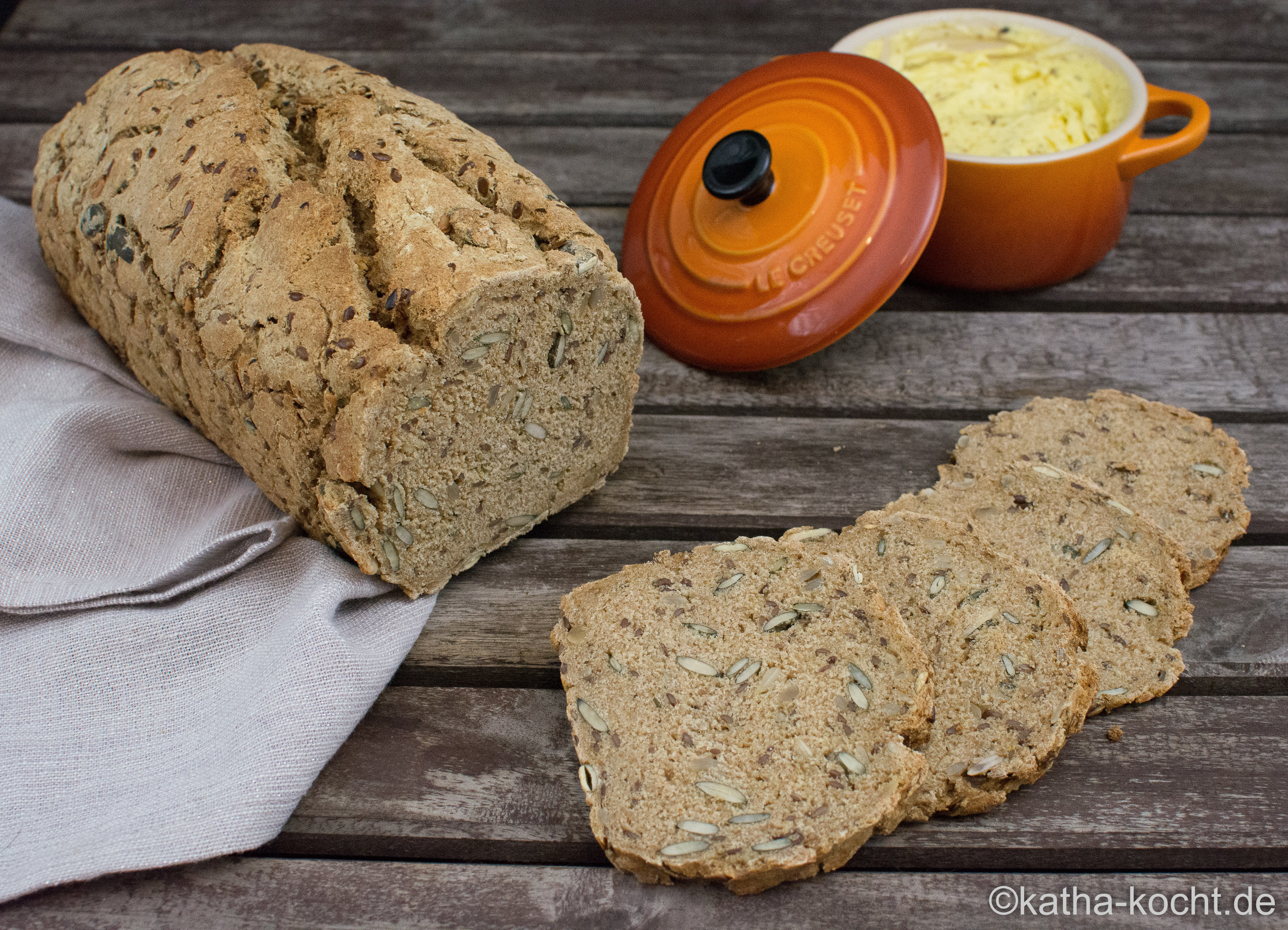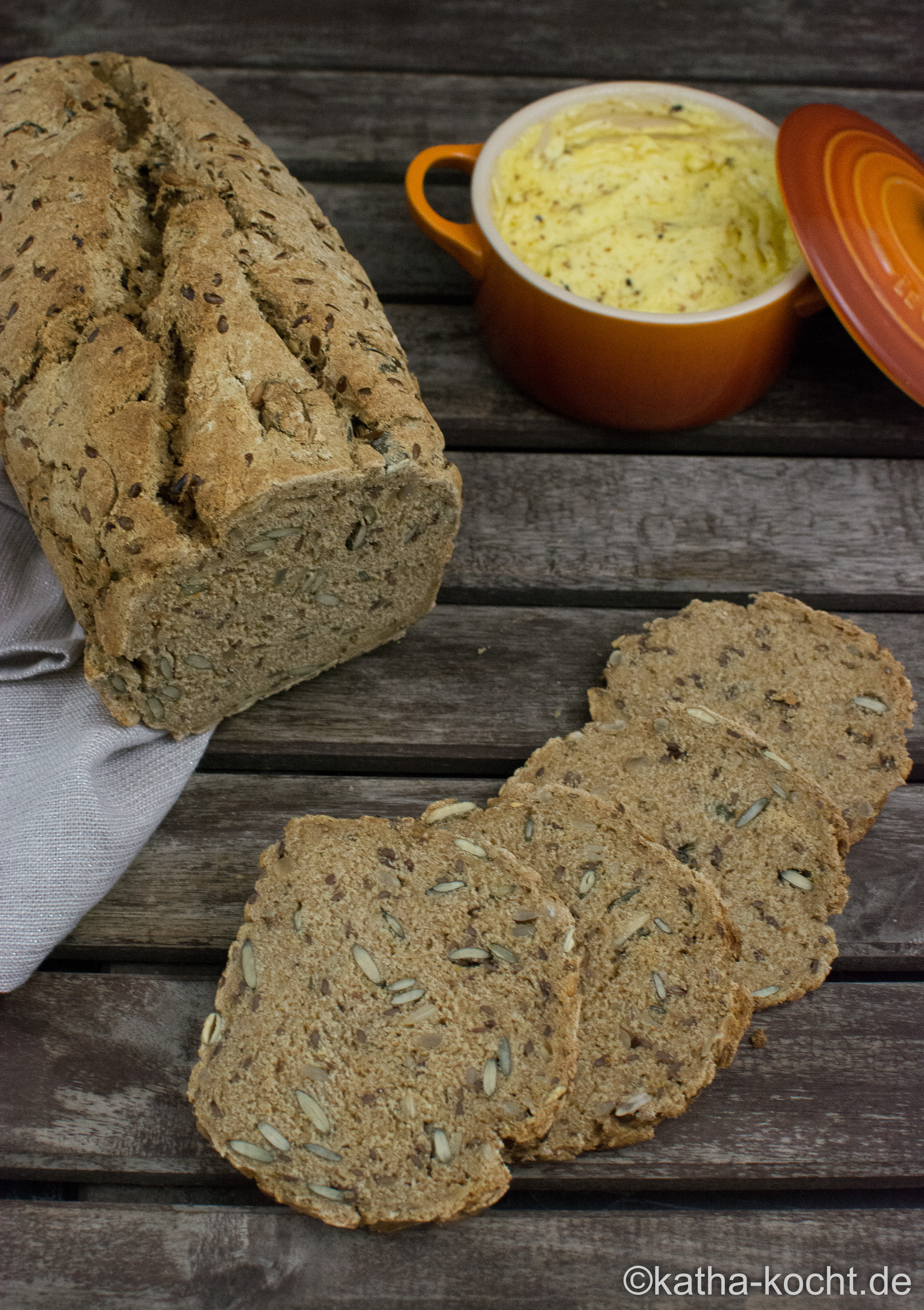 Für dieses Rezept habe ich mir Sandra’s Allerlei Körner Brot gemopst und das Rezept ein kleines bisschen abgewandelt. So ist daraus dieses Kastenbrot mit Körnern geworden. Das Rezept geht so schön schnell, das kann man auch mal spontan backen wenn gerade kein Brot im Haus ist. In meiner Variante mit ein bisschen Kürbiskernöl, einem Weizensauerteig und einer Kastenbrotform – das Ergebnis war ein rustikales, super leckeres und kräftiges Brot das perfekt für gesunde Sandwichs oder ein deftiges Abendbrot ist.