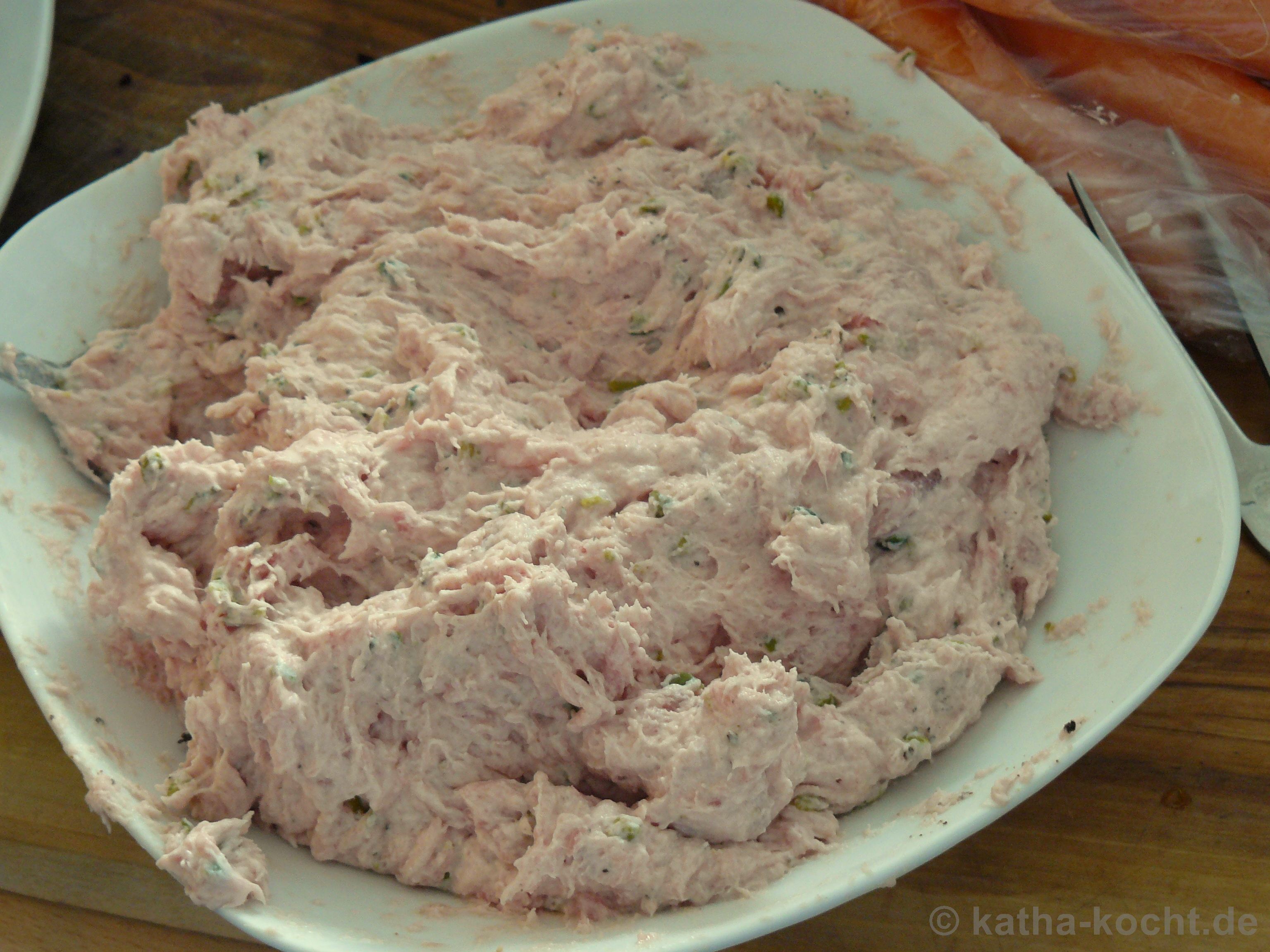 Bei meinem Lieblings-Kaisers habe ich neben der Gans und den Keulen auch das Kalbsfilet vorbestellt. An der Fleischtheke wurden mir noch wertvolle Tipps zum Anfrieren für die Farce gegeben. So ging es dann am 26.12. frisch ans Werk. Ich habe das Kalbsfilet in feine Würfel geschnitten, diese flach auf einem Teller ausgelegt und zum anfrieren für 15 Minuten ins Tiefkühlfach gestellt. Dann habe ich die Würfel portionsweise mit kalter Schlagsahne mit meinem Stabmixer zu einer Farce verarbeitet. Mein Stabmixer hat dabei ab und an ein wenig geraucht, aber er hat überlebt!