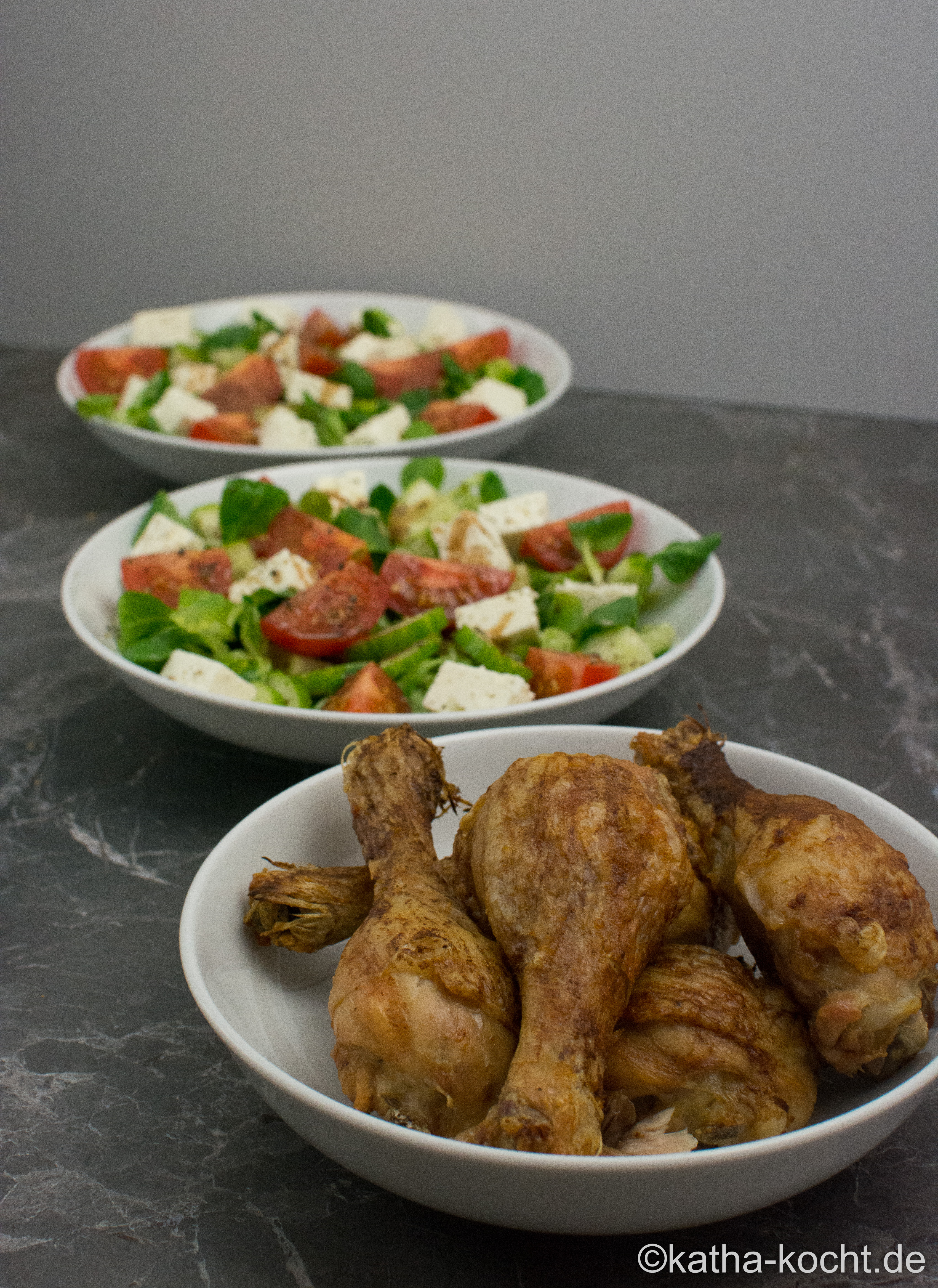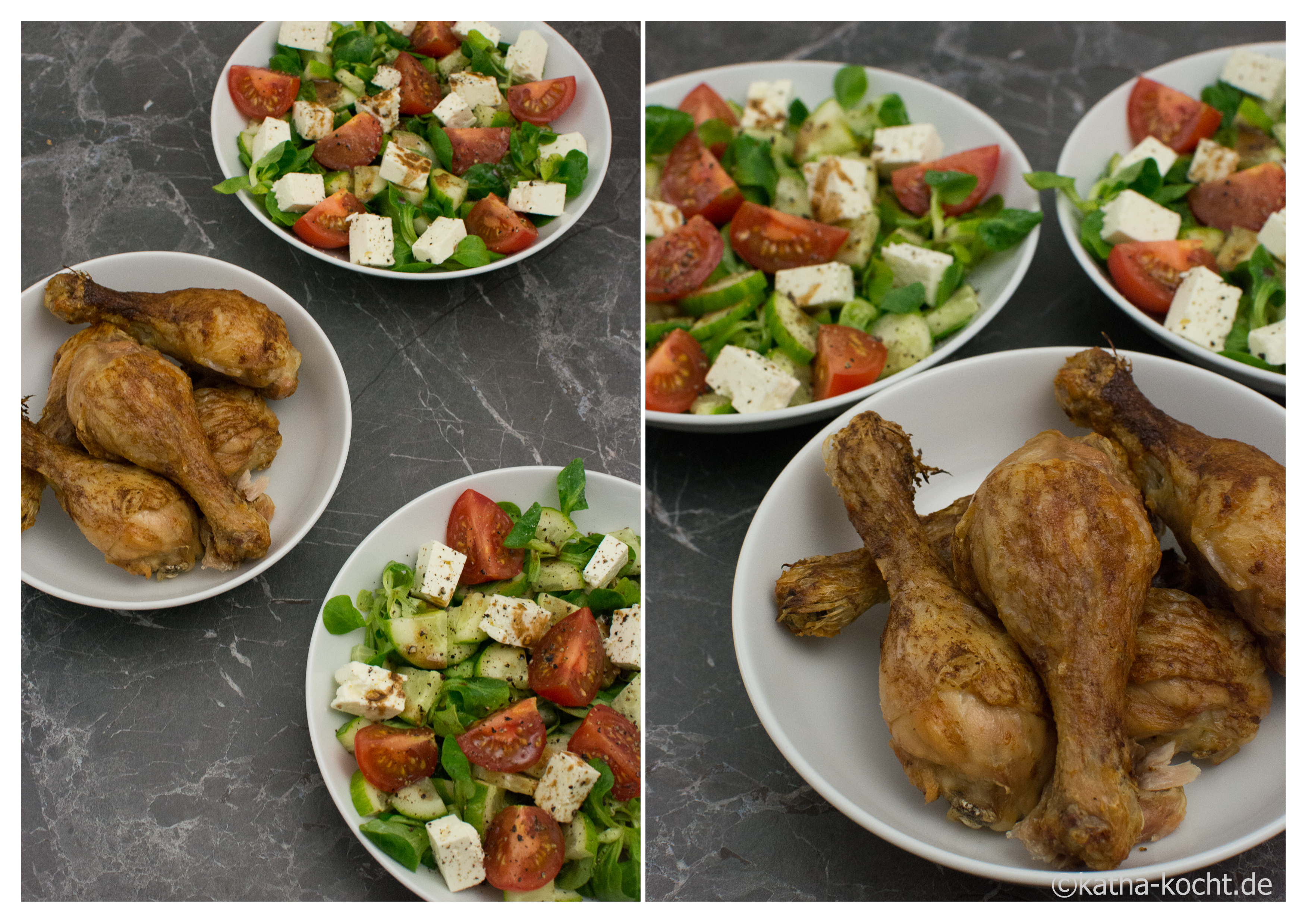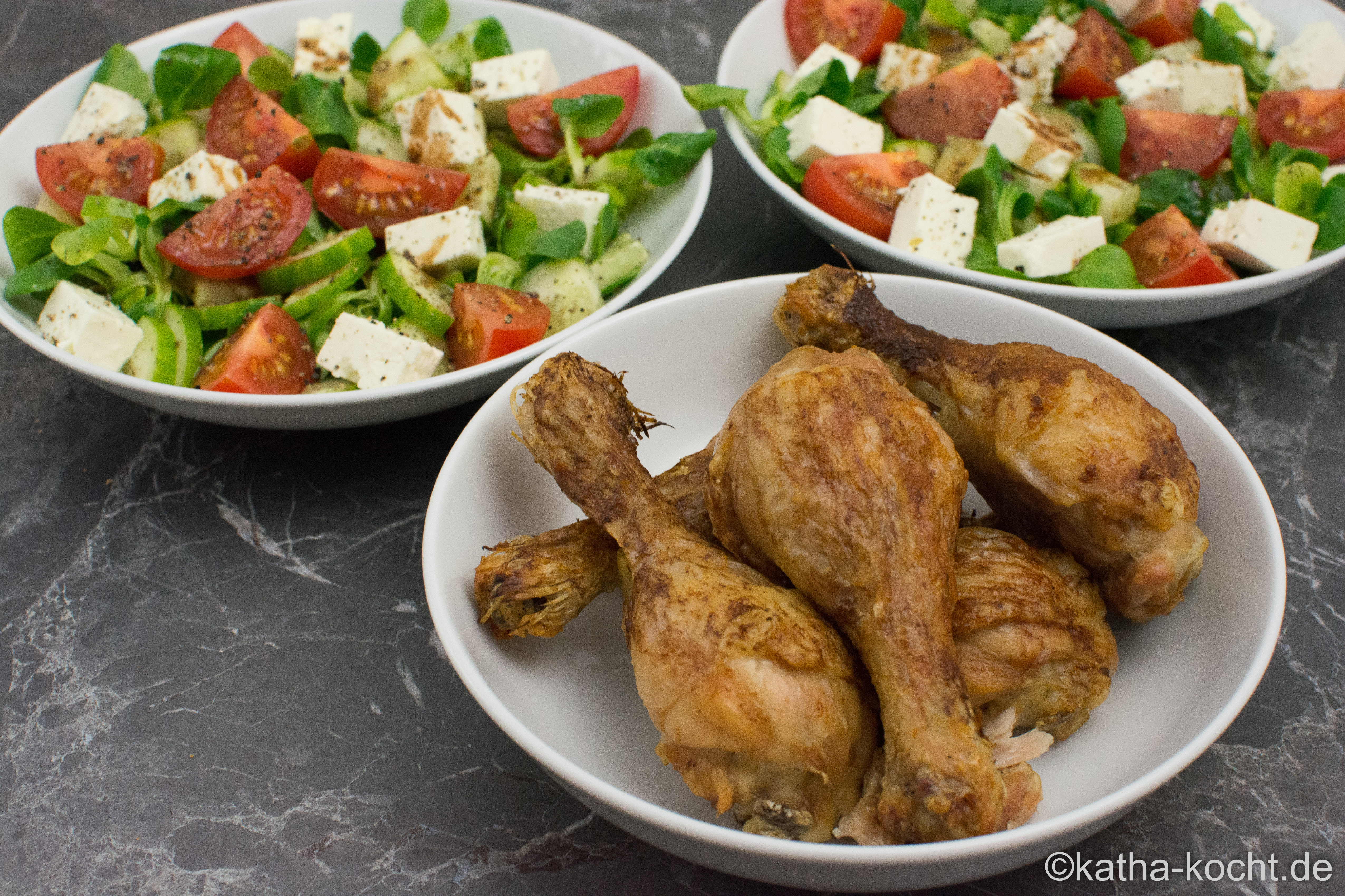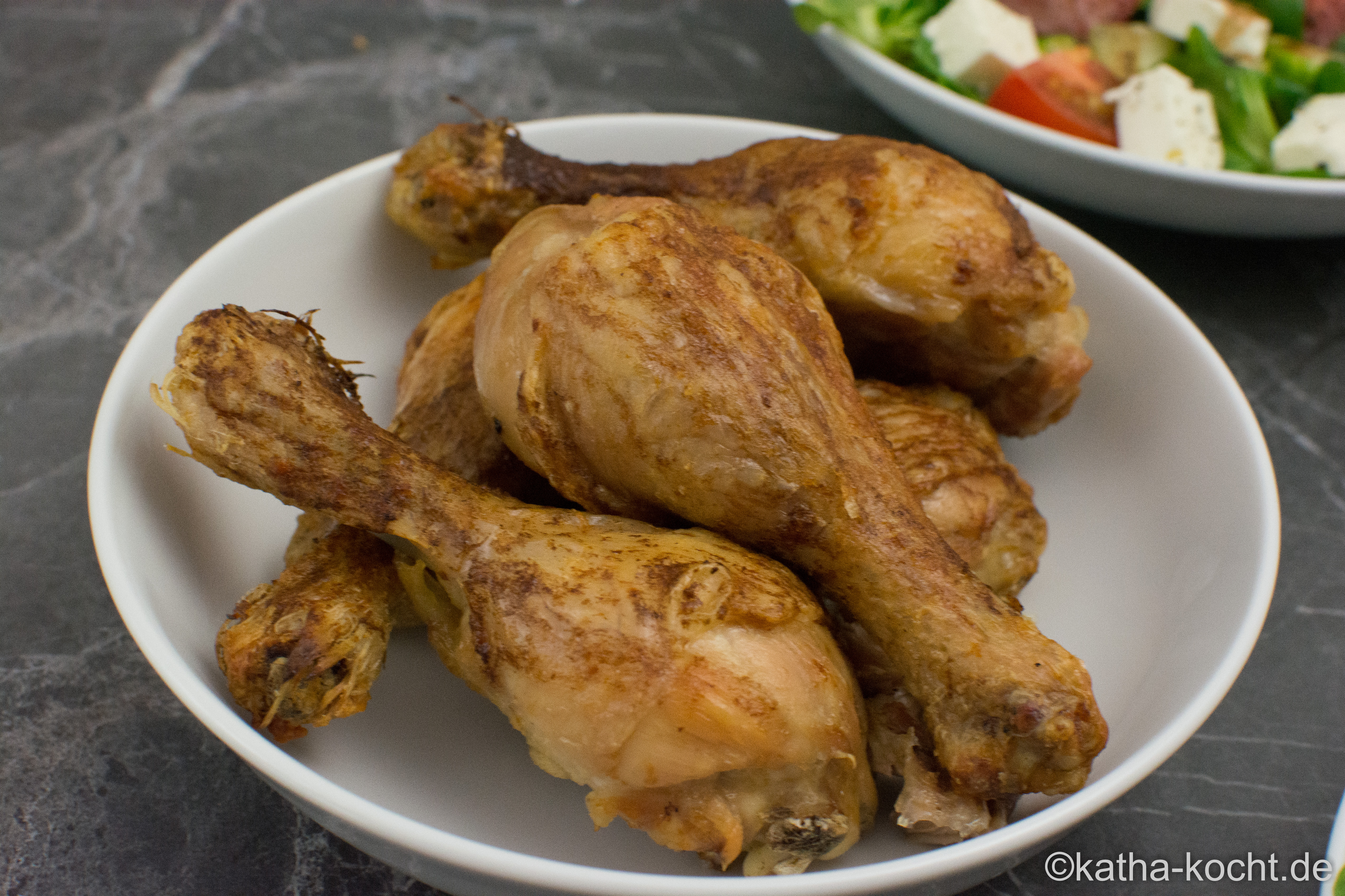 Knusprige Hähnchenschenkel mit Salat
