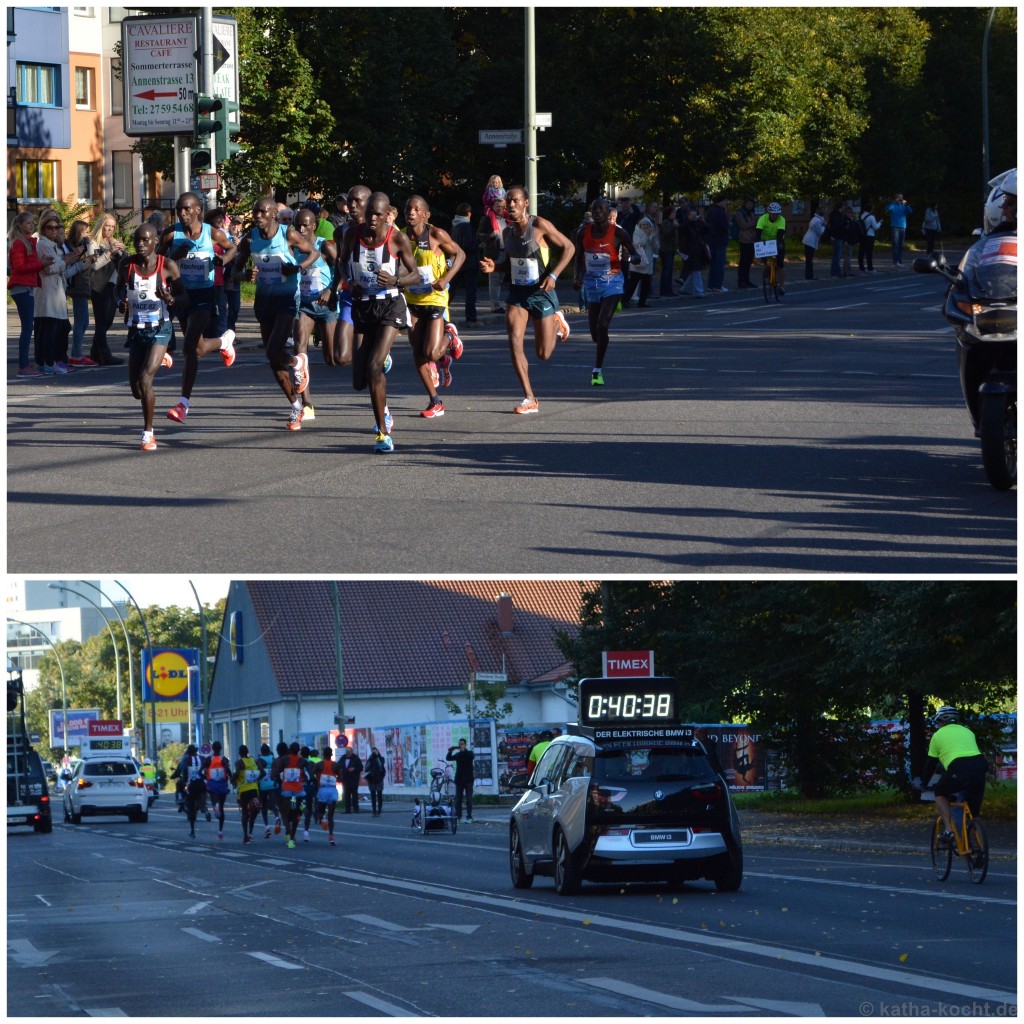 Aber zuerst geht es ab an die Laufstrecke. Im Fernsehen wird der Start verfolgt. Als die Läufer durch Moabit durch sind machen wir uns auf den Weg. Beim Bäcker noch ein Käffchen für Bessere Hälfte geholt – dann kommen sie auch schon. Die Spitzentruppe passiert uns um die 40. Minute und ich freue mich über den Sport-Modus meiner Kamera.