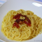 Pasta ist eine tolle Sache – und wie jedes Jahr zur Weihnachtszeit gibt es bei mir eine Pasta Carbonara. Das Eiweiß habe ich nämlich zu Zimt Baisers verzaubert… im letzten Jahr waren es Kokosmakronen. Und seit Ariane erklärt hat, dass die Carbonara gar nicht italienisch ist habe ich auch wieder Lust sie zu kochen… natürlich nicht, weil sie nicht italienisch ist, sondern weil die von Ariane soooo lecker aussieht. Außerdem habe ich endlich die letzten Chili geerntet und der Carbonara damit eine leichte Schärfe verliehen!