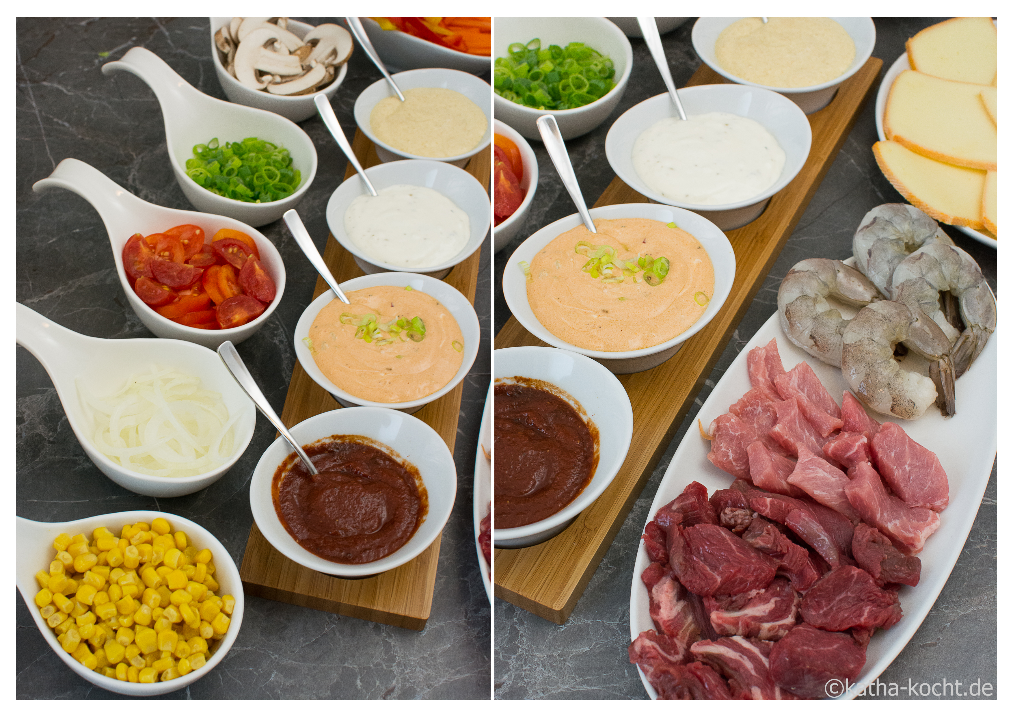Der Titel für diese Seite ist ganz bewusst gewählt. Die Zutaten für Raclette sind ohne Grenzen variabel. Fisch, Fleisch, Gemüse, 101 Käsesorten – der Kreativität sind keine Grenzen gesetzt. Die Frage, die man sich aber immer wieder stellt, ist: „welche Raclette Saucen mache ich nur dazu???“ Ich habe meistens viele Ideen, aber wenn man nur zu zweit raclettiert wird es halt schnell zu viel. Hier eine Sammlung meiner Lieblingsdips und eine Liste meiner bevorzugten Raclette-Zutaten. Der Vorteil bei den Dips – die Basis ist für alle fast gleich, den Unterschied machen die Gewürze!