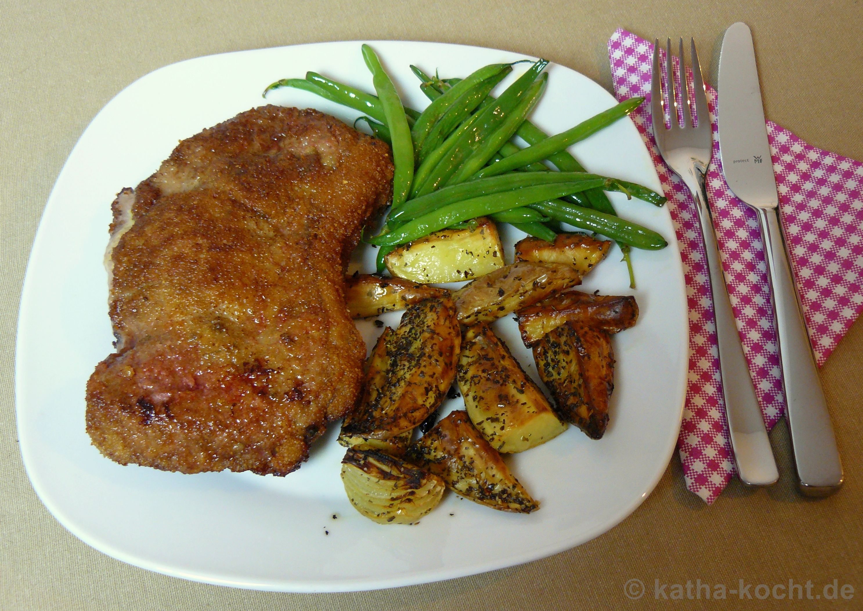 Rinder Cordon-Bleu mit Bohnen und Kartoffeln