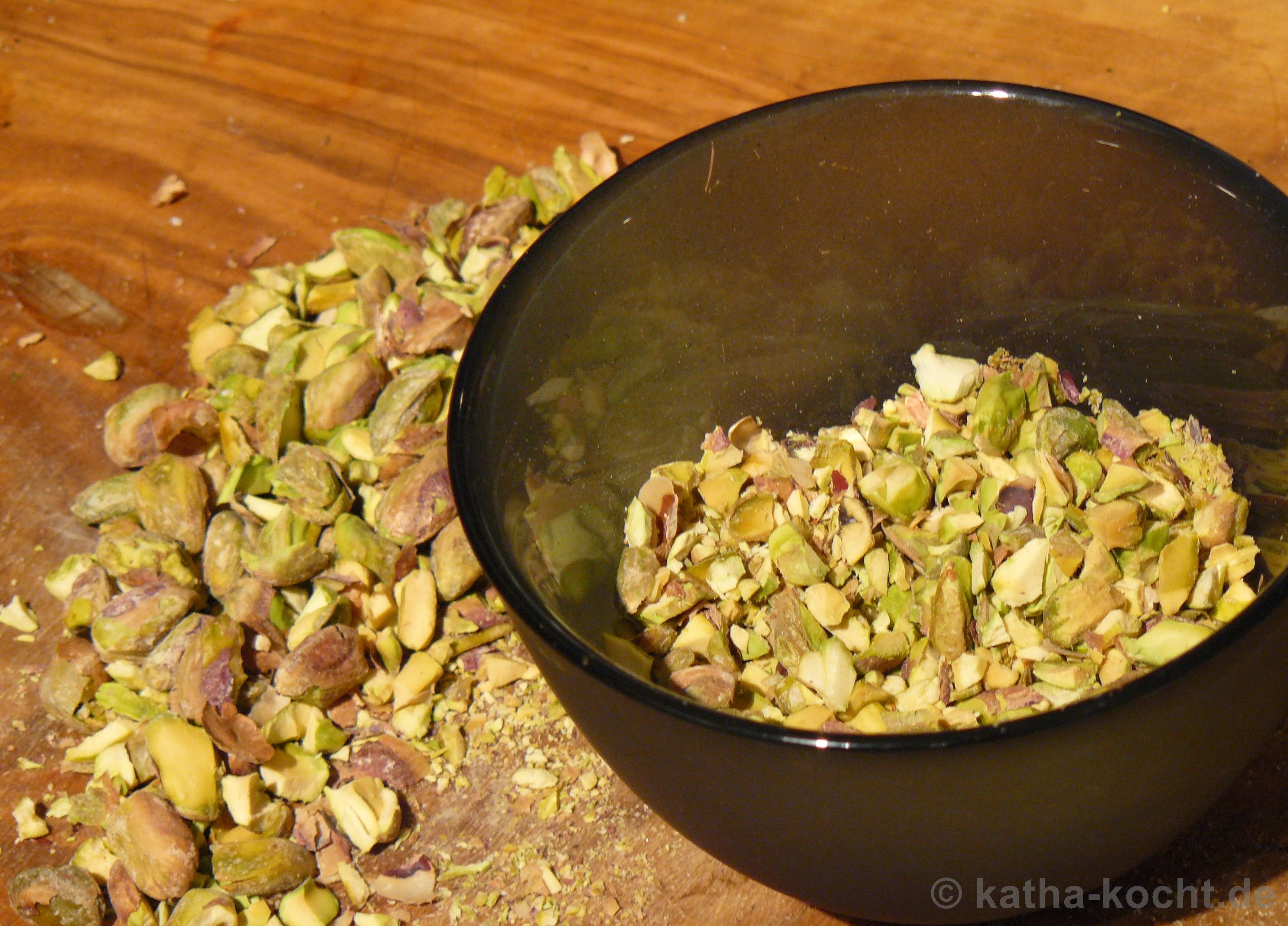 60g Pistazien (gehackt, beim mir salzig – im Original 200g)