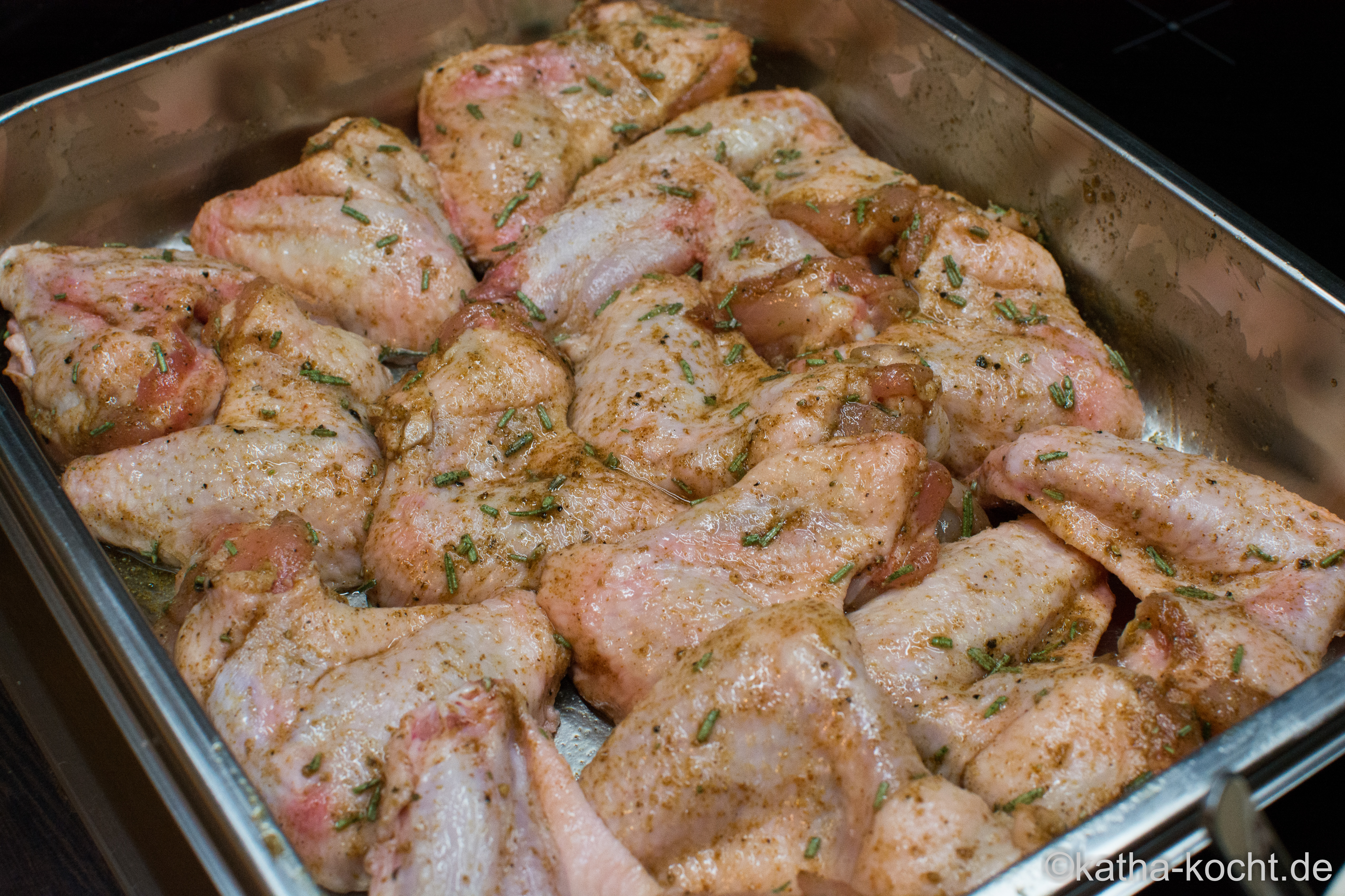 • Rosmarin Chicken Wings mit Honig-Senf SauceRosmarin Chicken Wings mit Honig-Senf Sauce