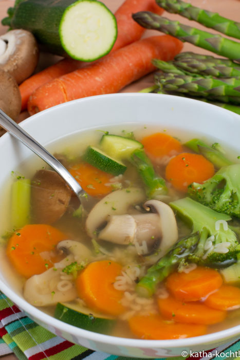 Irgendwie schwankt das Wetter ja zwischen Frühling und Sommer, Regen und Sonne, leichten Salaten und Eintopf. Gut, Salate und Eintopf sind natürlich kein Wetter, passen aber irgendwie immer zu dem entsprechenden Wetter. So oder so ist Spargelzeit und irgendwie wandert jede Woche mindestens 1 kg grüner oder weißer Spargel in den Einkaufskorb um dann zu zahlreichen Gelegenheiten den Weg in die Pfanne oder den Topf zu finden. Der kleine Mann isst dabei höchstens die Spargelspitzen oder schiebt den restlichen Spargel beiseite, aber in ich sorge dann einfach für genug anderes Gemüse auf dem Teller. Und während ich als Kind als Kind überhaupt kein Fan von Eintöpfen war kann er davon kaum genug bekommen. Somit war mein vegetarischer Nudeltopf mit grünem Spargel ein perfektes schnelles Rezept für unter der Woche!