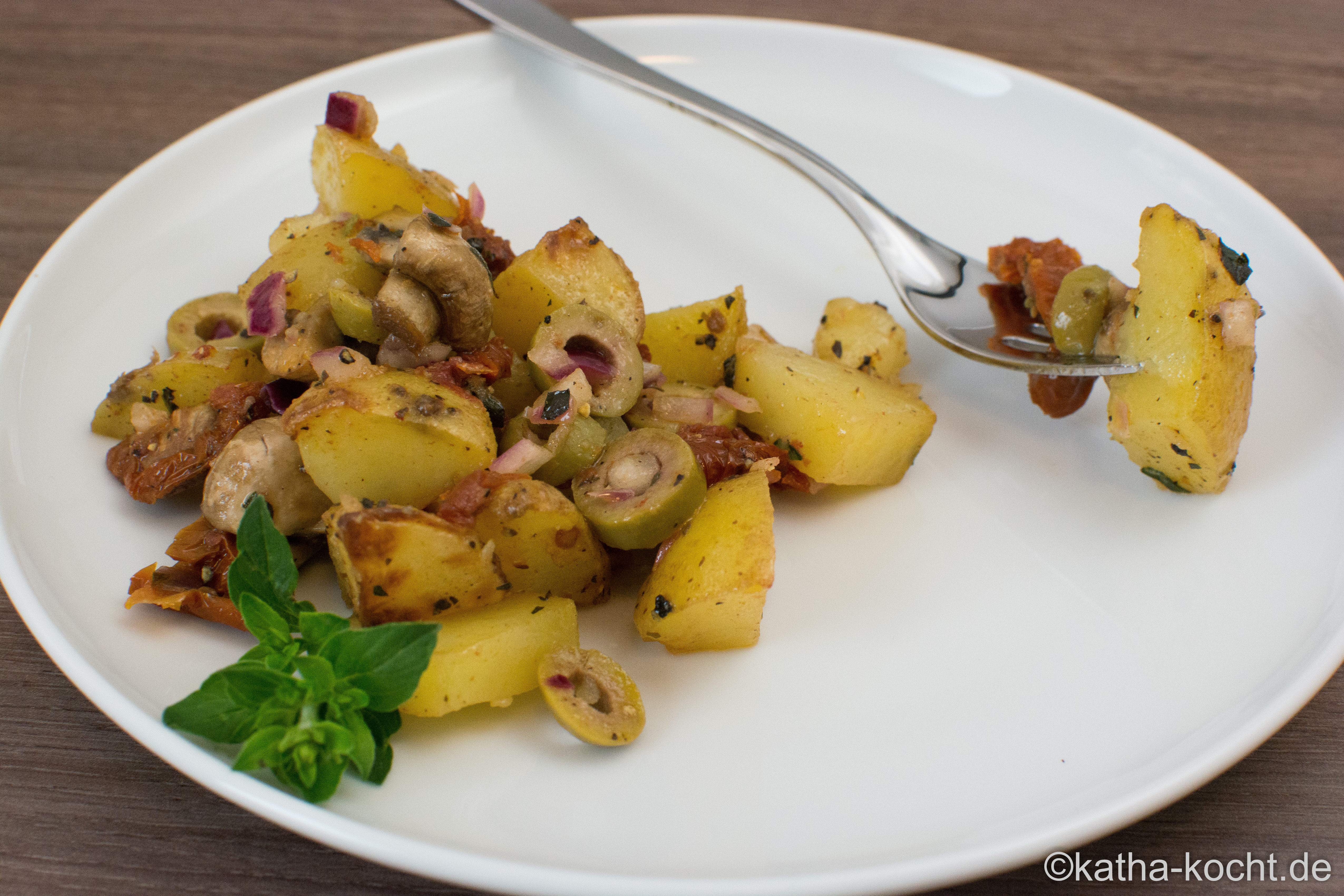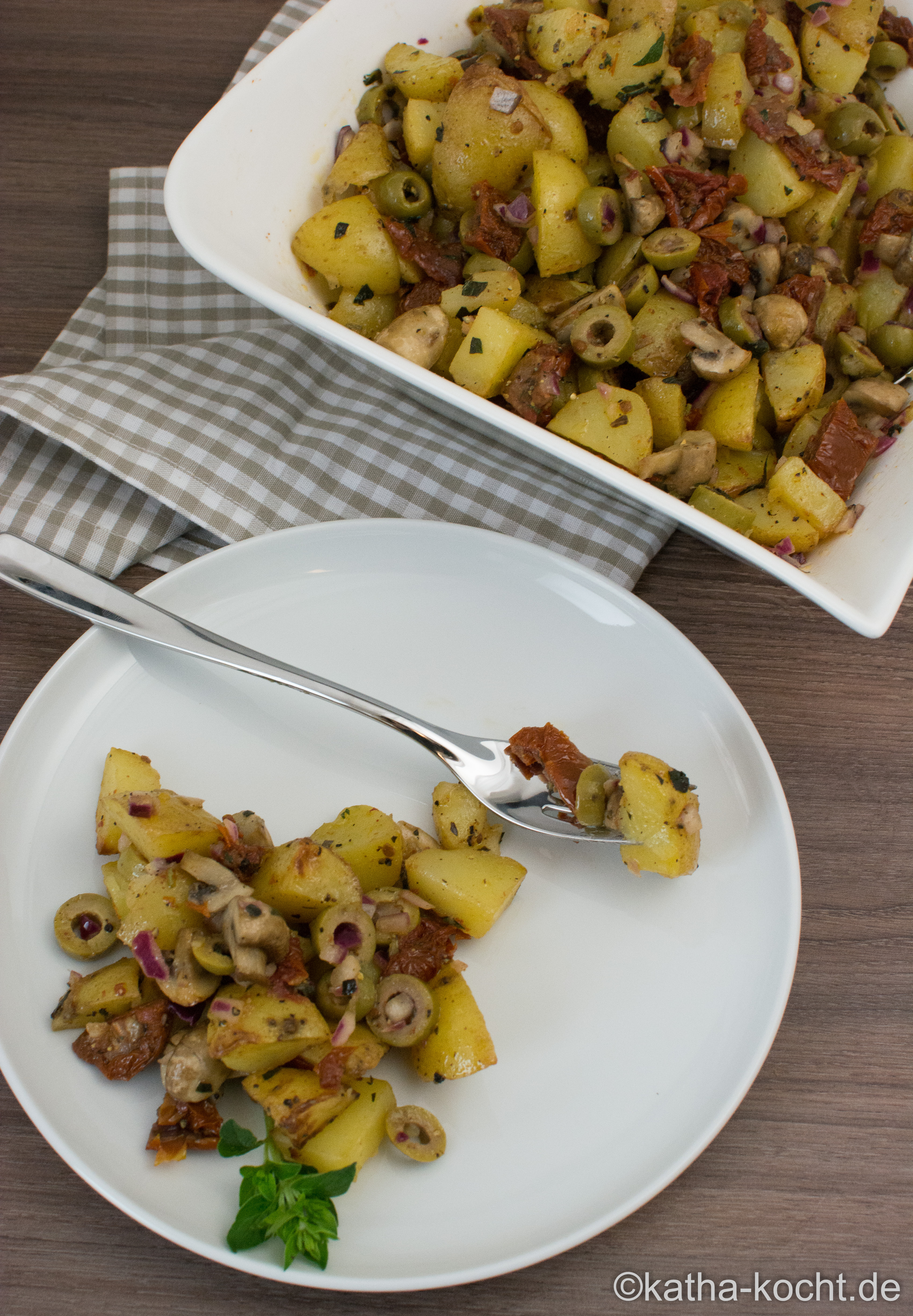 Kategorie: Salate Stichworte: champignons, getrocknete Tomaten, kartoffeln, oliven