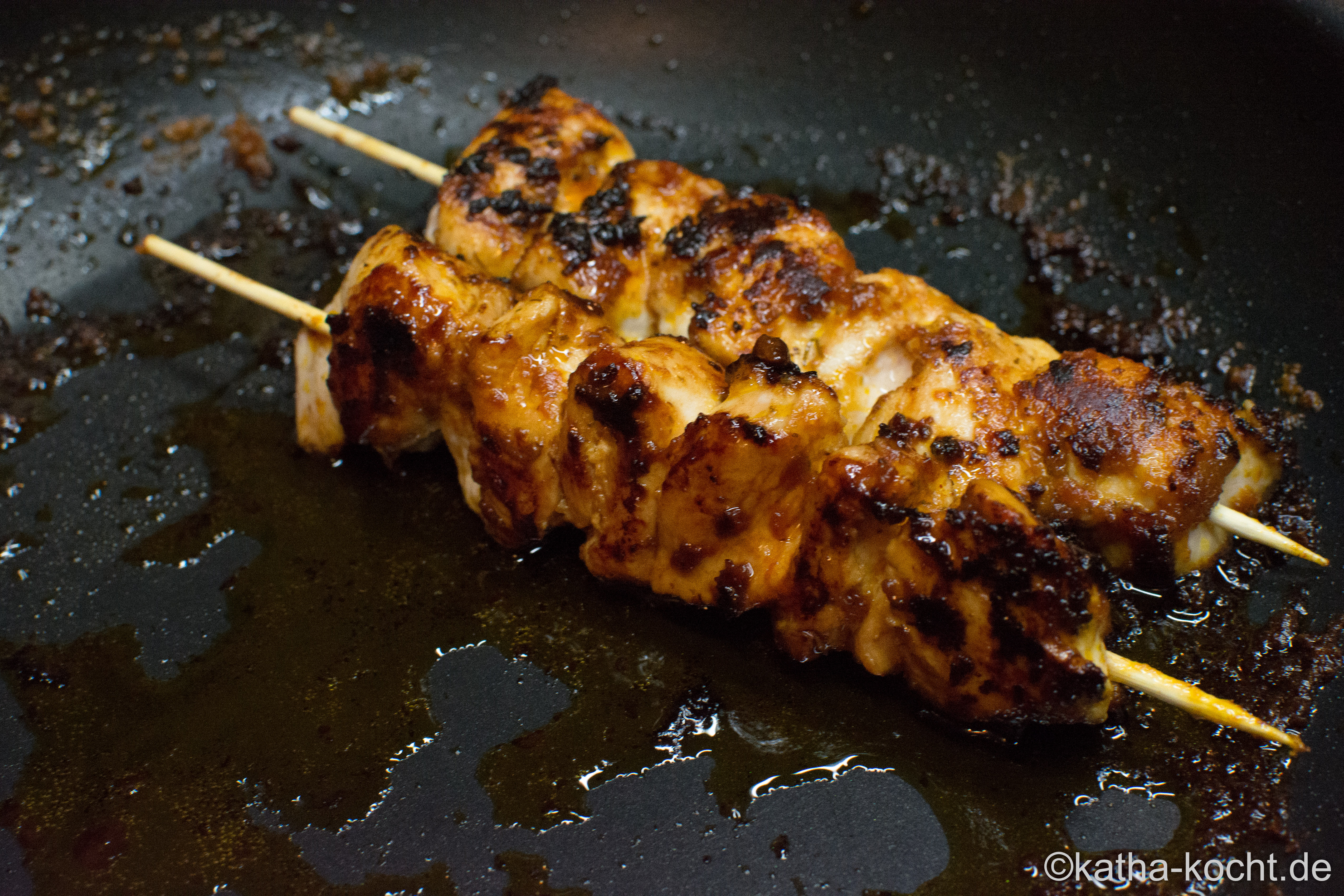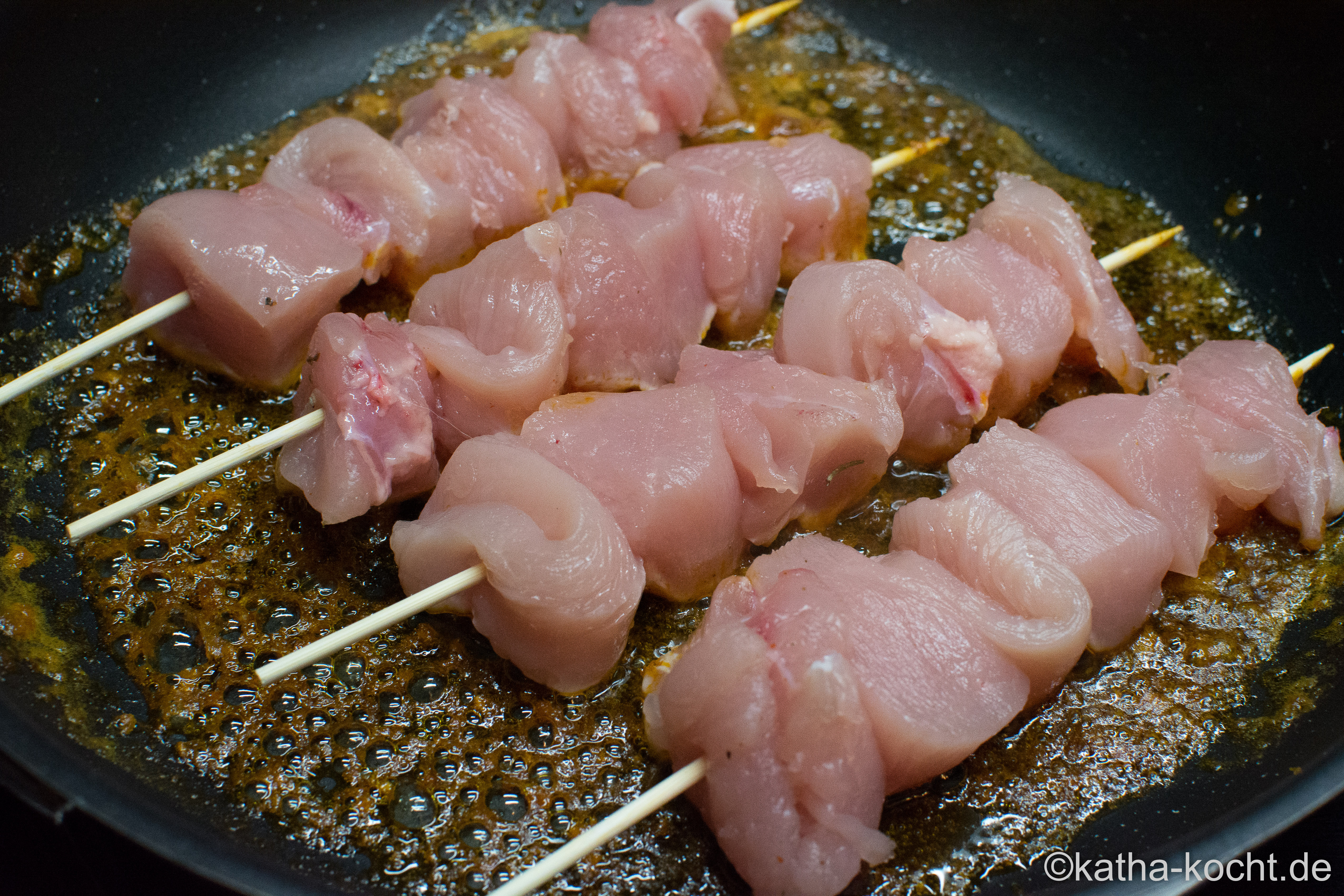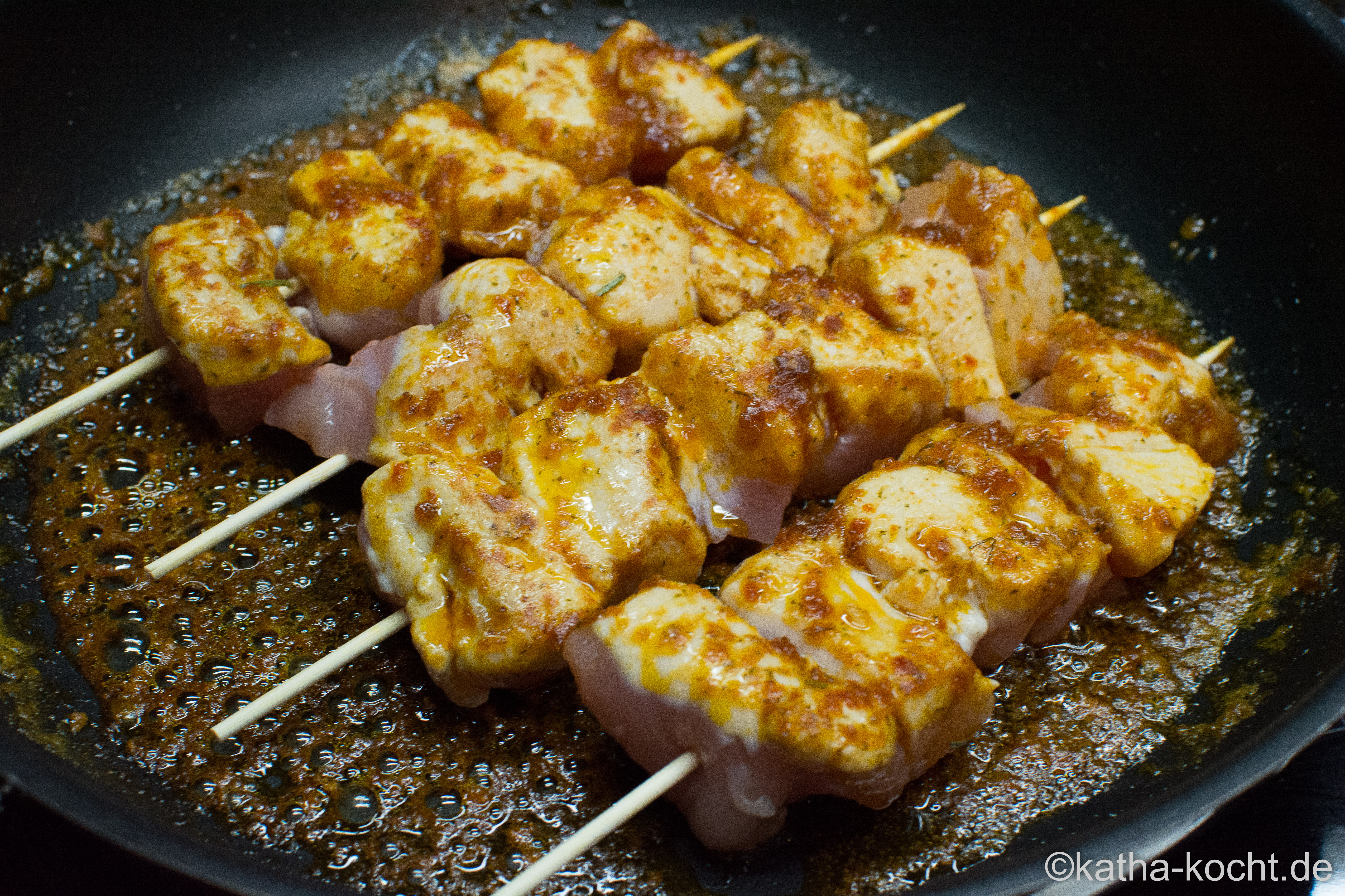 … und die Spieße bei mittlerer Hitze fertig braten. Das dauert in etwa 10-12 Minuten.