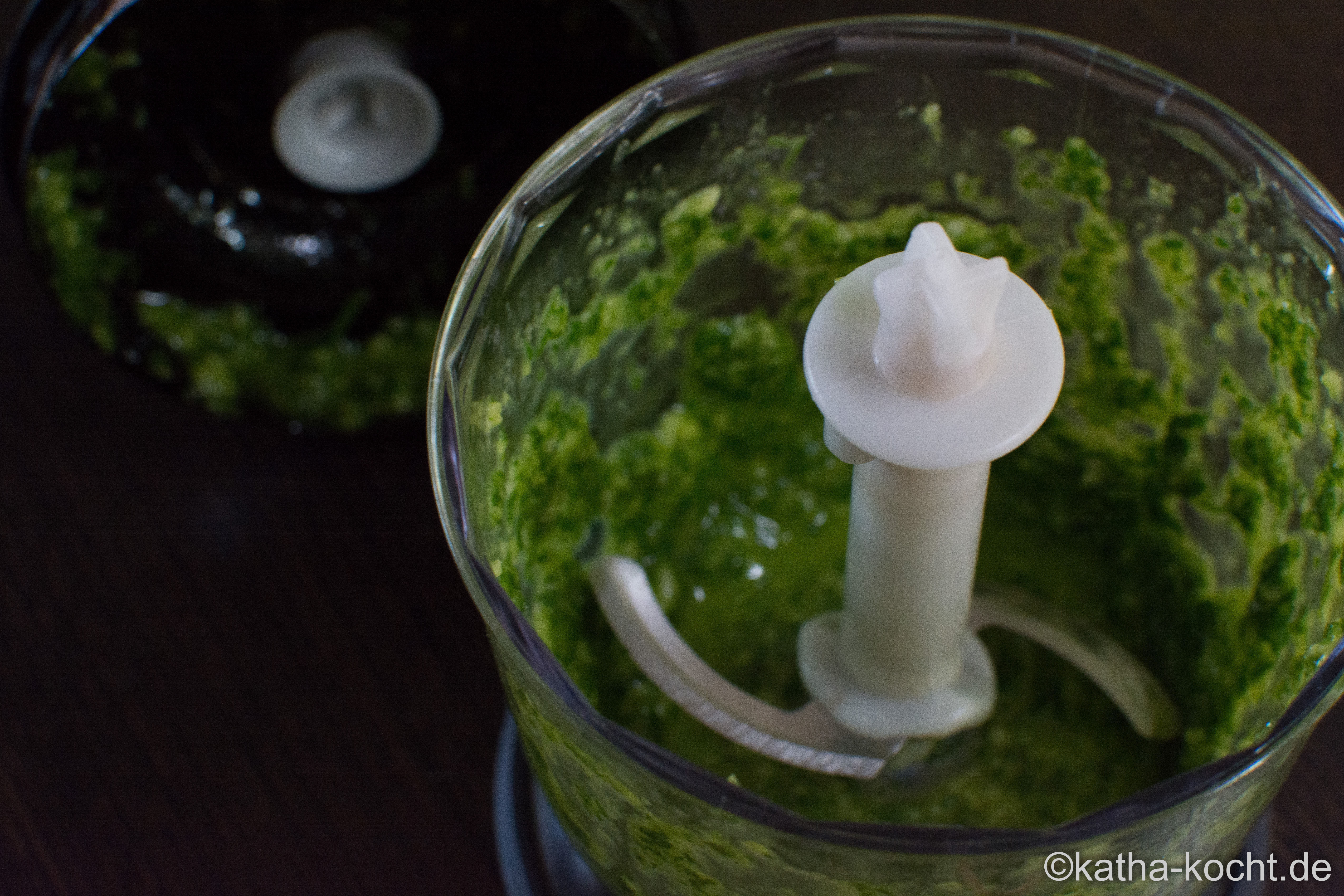 Die Garnelen auftauen und abtropfen lassen. Die Estragon Blätter, den geschälten Knoblauch, das Olivenöl, Pfeffer und Salz in einen kleinen Mixer geben und zu einem feinen Gewürzöl mixen.