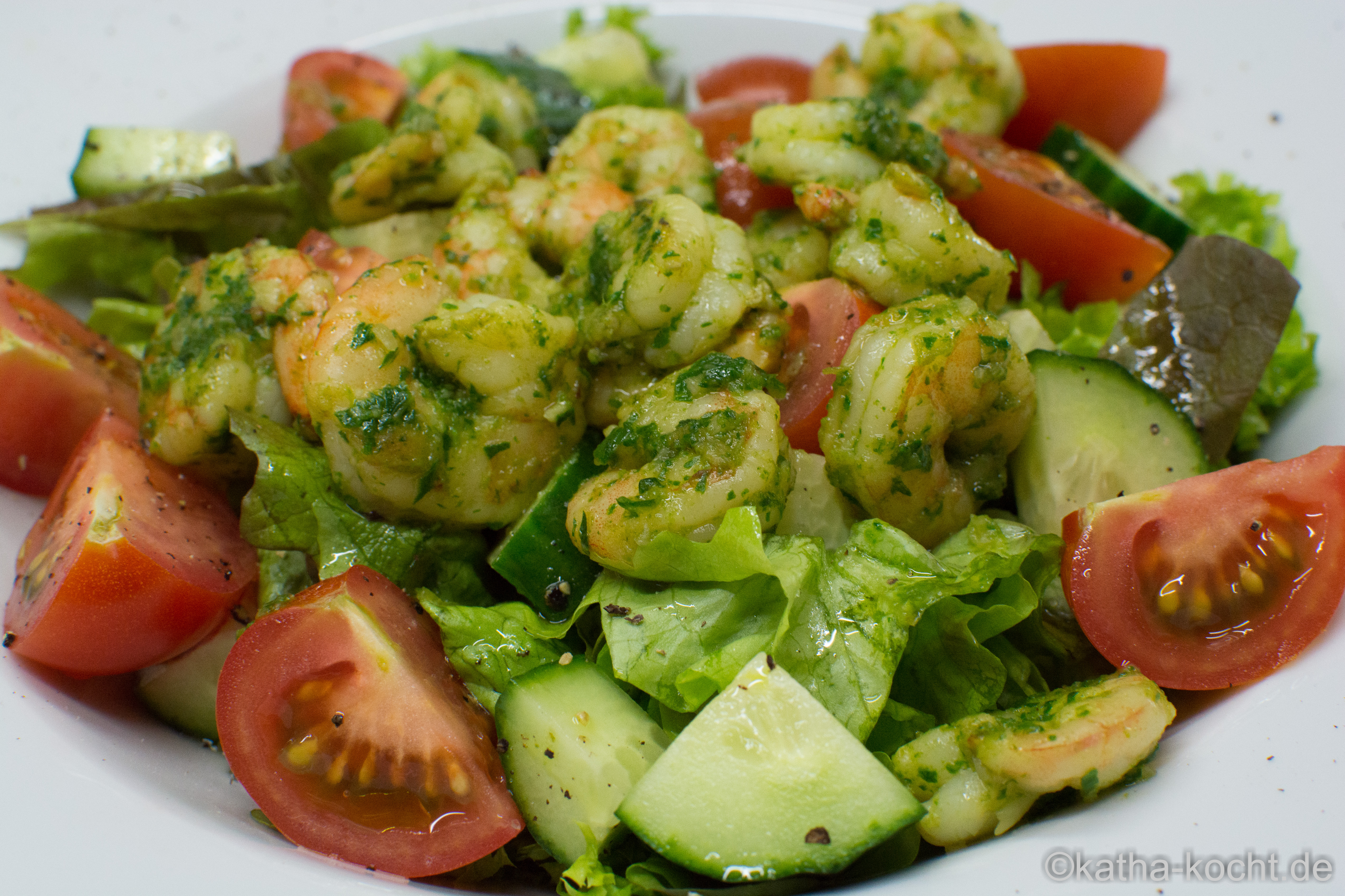 Bunter Salat mit Estragon-Garnelen