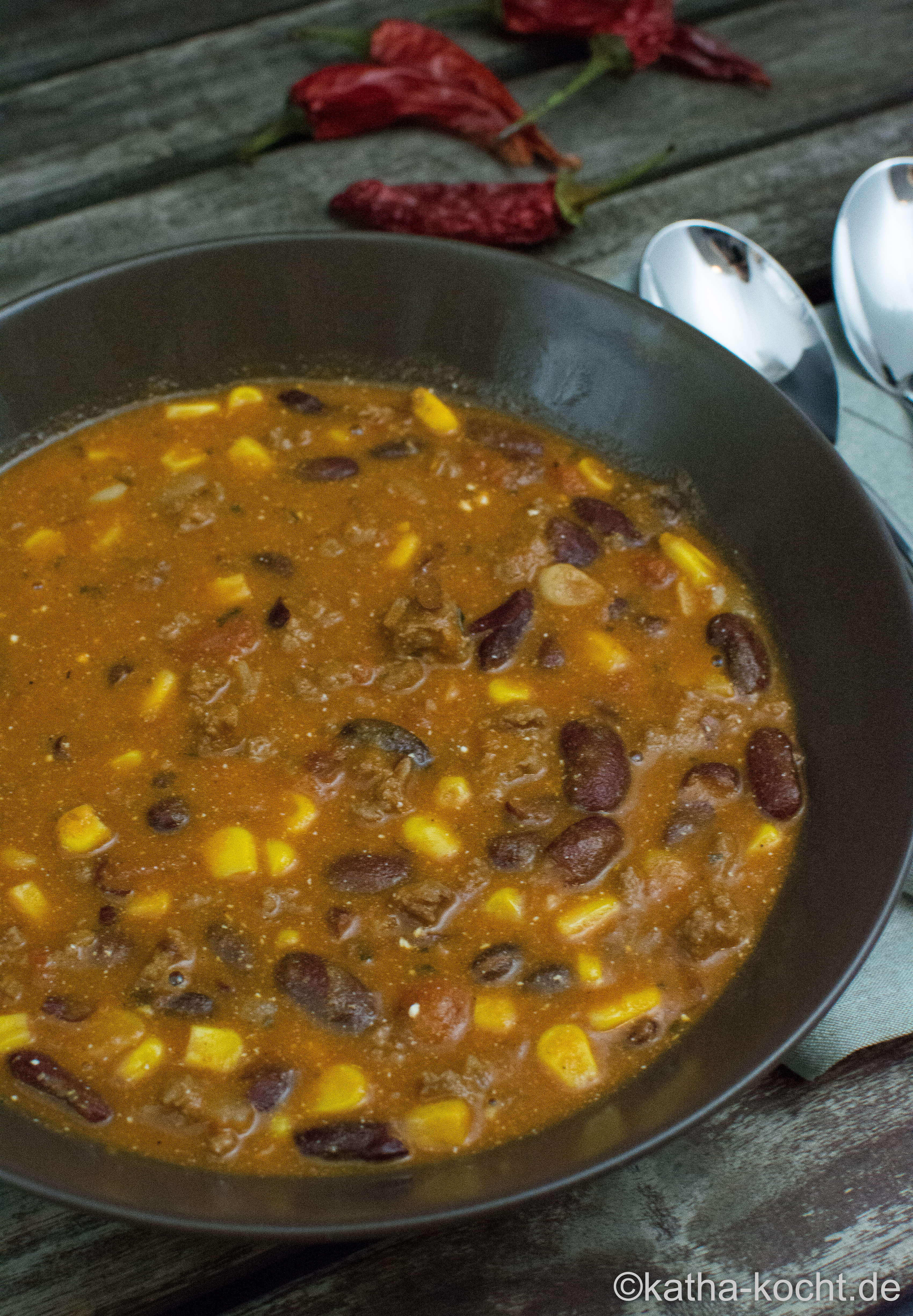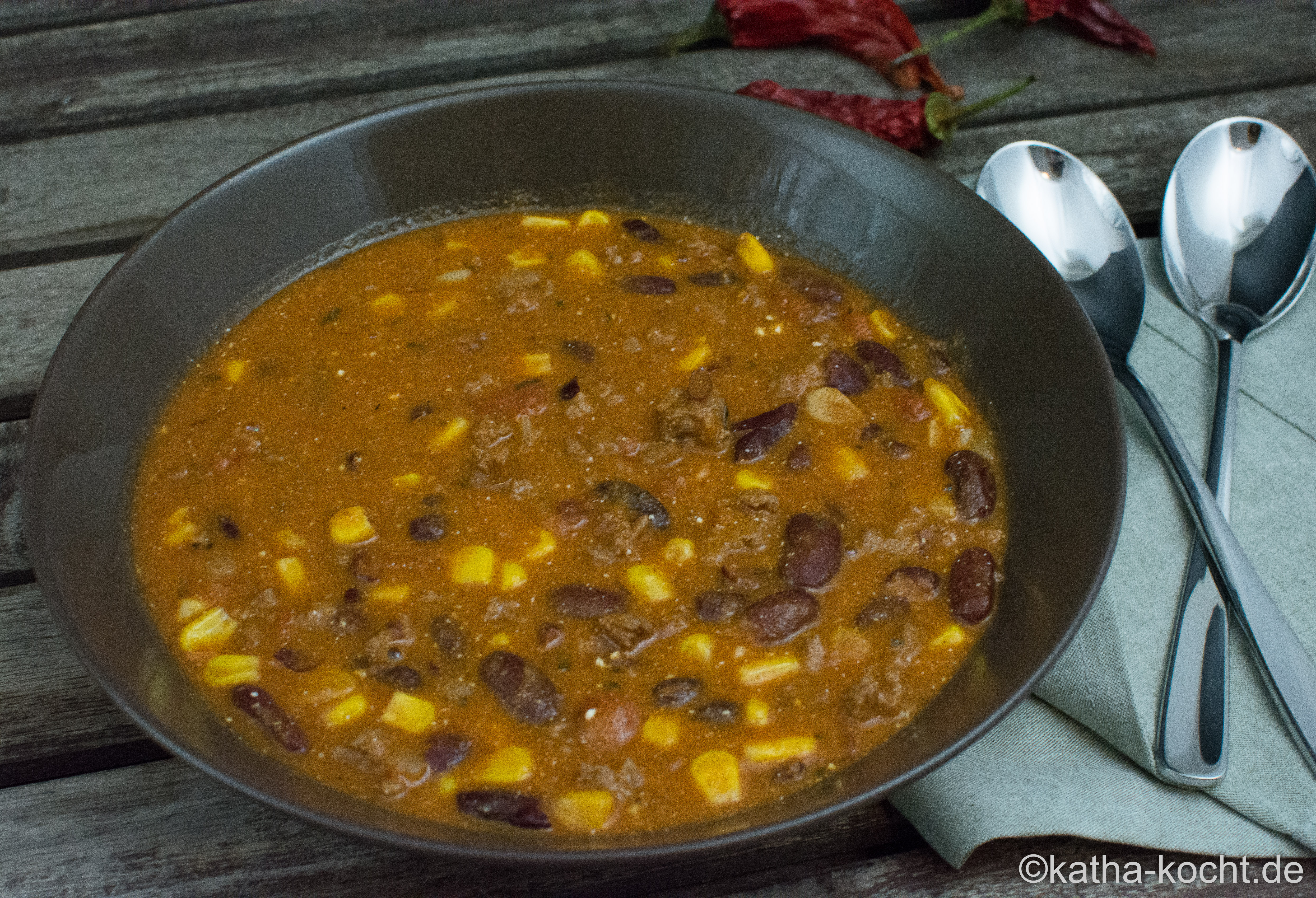 Chili con carne – ein echter Klassiker und auf Partys oder in der kalten Jahreszeit immer wieder gerne gegessen. Und auch bei mir in der Küche ist dieses Chili im wahrsten Sinne des Wortes ein Klassiker, es ist nämlich eins der wenigen Rezepte das immer noch genau so auf den Tisch kommt wie ich es hier beschrieben habe – aus meiner Sicht ist es nämlich einfach unschlagbar! Und als kleiner Tipp: am aller, aller aller besten schmeckt es tatsächlich am nächsten Tag – da ist es nämlich nochmal ein bisschen sämiger und schön durchgezogen.