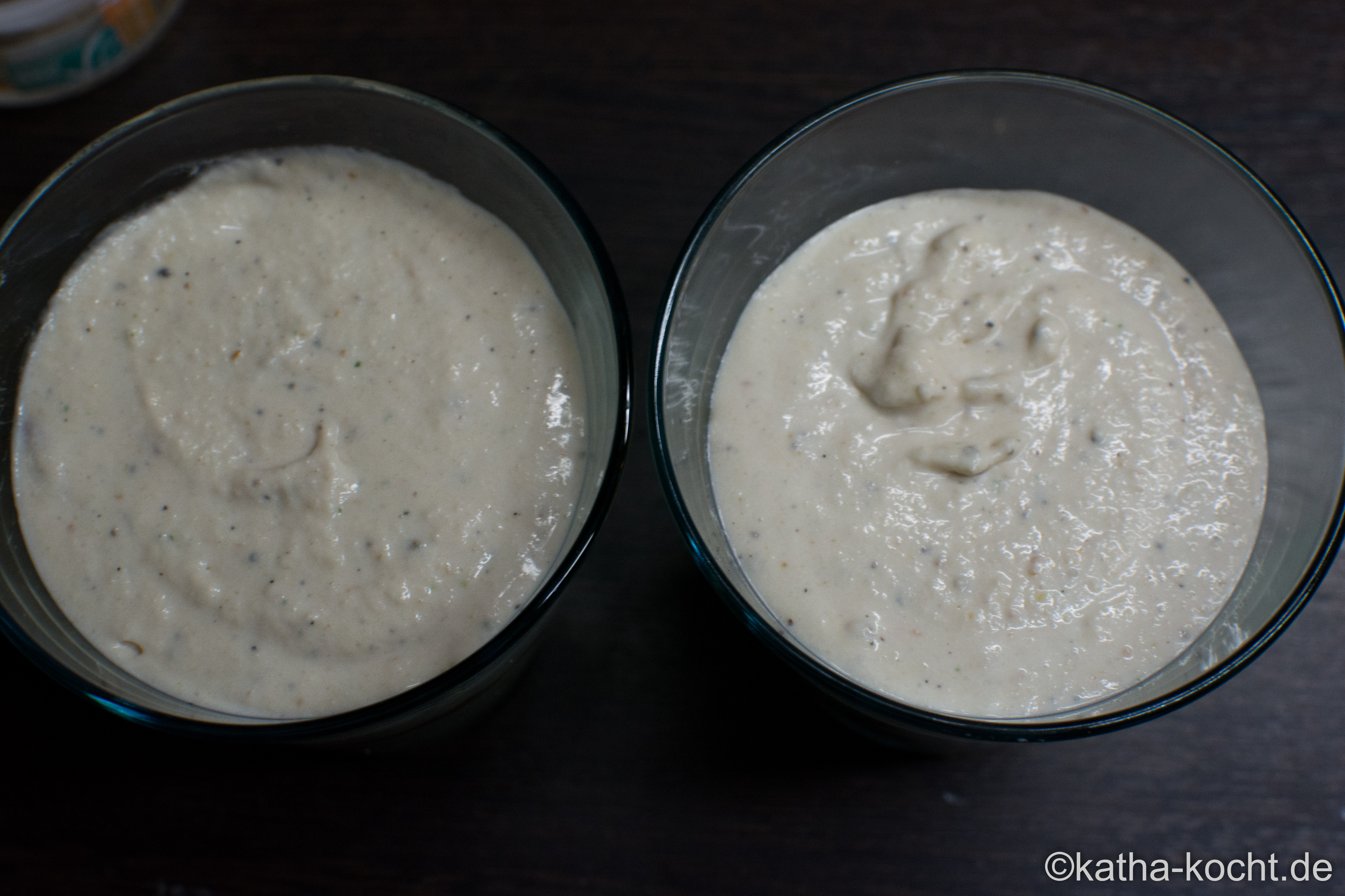Die Creme lässt sich wunderbar vorbereiten und kann auch einige Stunden im Kühlschrank verbleiben. Dann würde ich die feinen Gurkenwürfel und den Dill erst kurz vor dem Servieren darauf geben.
