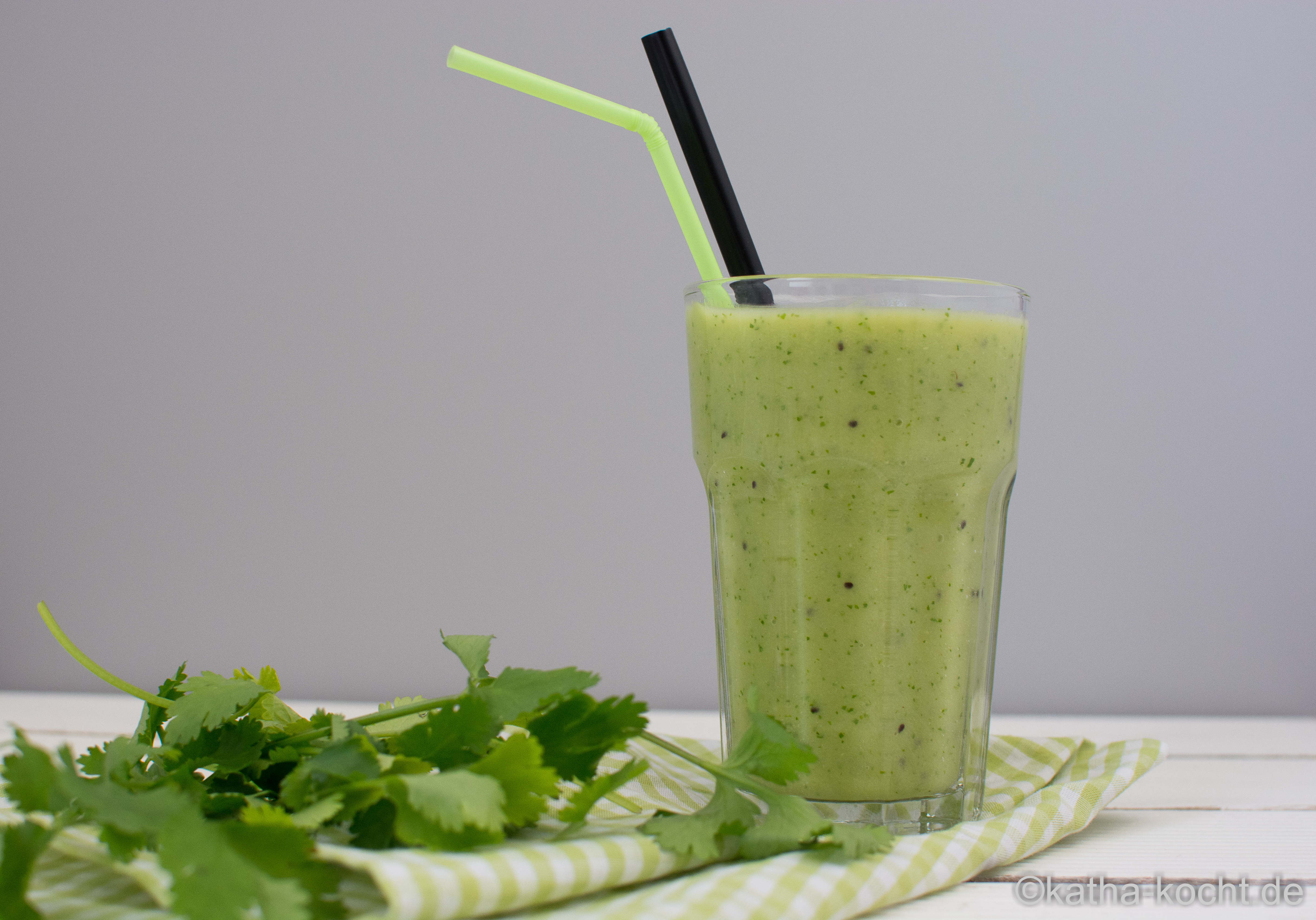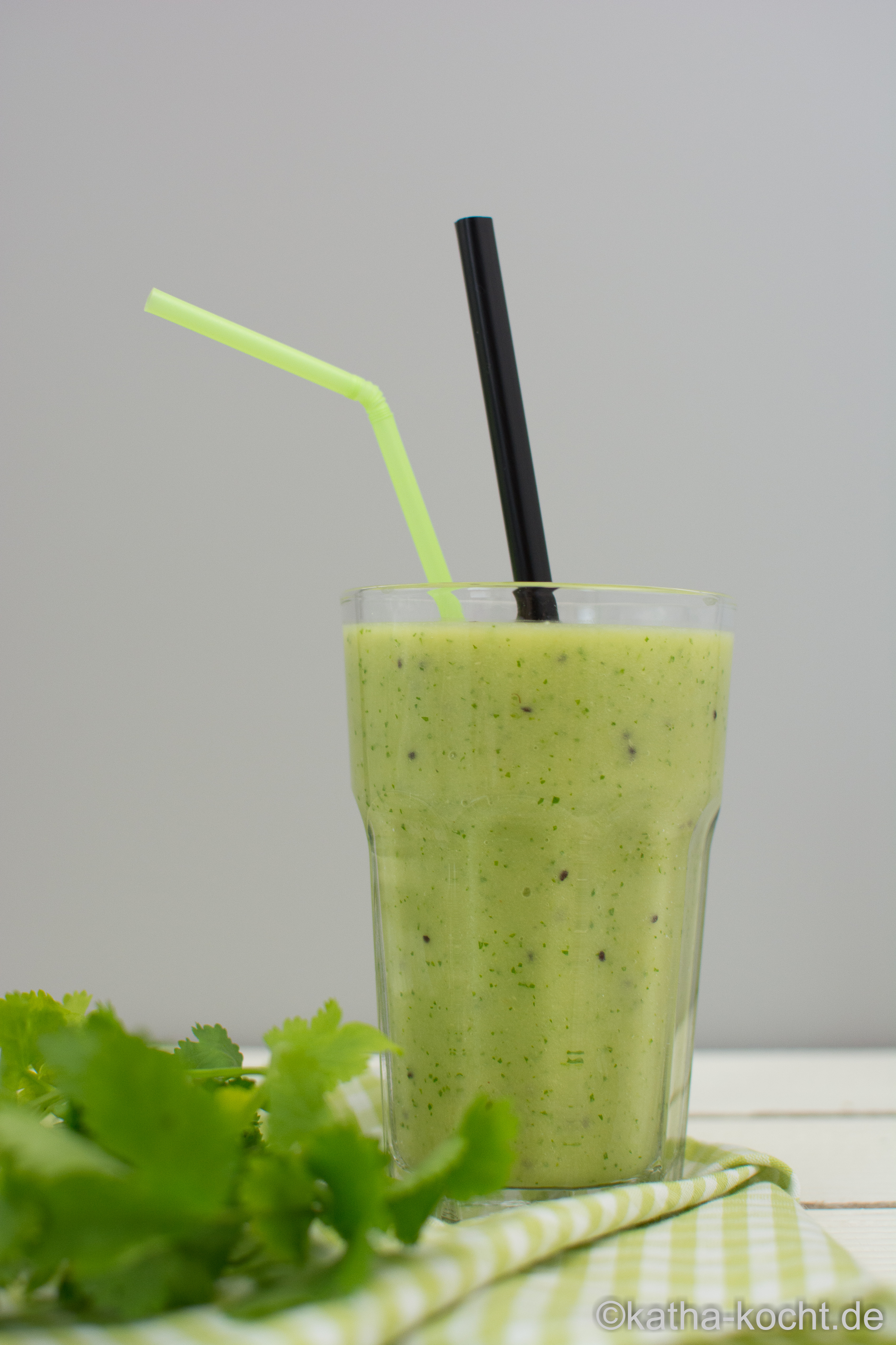 In Berlin beginnt heute die Grüne Woche 2016 und natürlich werden wir auch wieder hingehen – aber erst am nächsten Wochenende. Bis dahin habe ich mir für dieses Jahr ein kleines Projekt überlegt: die Grüne Woche ist in Berlin, ich bin in Berlin, also wird es grün – und das nicht nur auf der Messe, sondern auch auf dem Blog! Jeden Tag ein grünes Rezept, so stelle ich mir das vor. Natürlich nicht immer nur pur grün, so wie dieser leckere und super cremige Smoothie hier – aber grün wird der rote grüne Faden in den nächsten Tagen sein und dabei wird es hier trotzdem so abwechslungsreich zugehen wie ihr es von mir gewohnt seid. Seid ihr schon gespannt? Ich auch – und dabei habe ich schon einiges an Ideen! Nun aber zurück zum Smoothie – eine Avocado, ein Apfel, Kiwi und Koriander treffen auf erfrischendes Kokosnusswasser. Frisch und cremig und dazu noch rundum gesund!