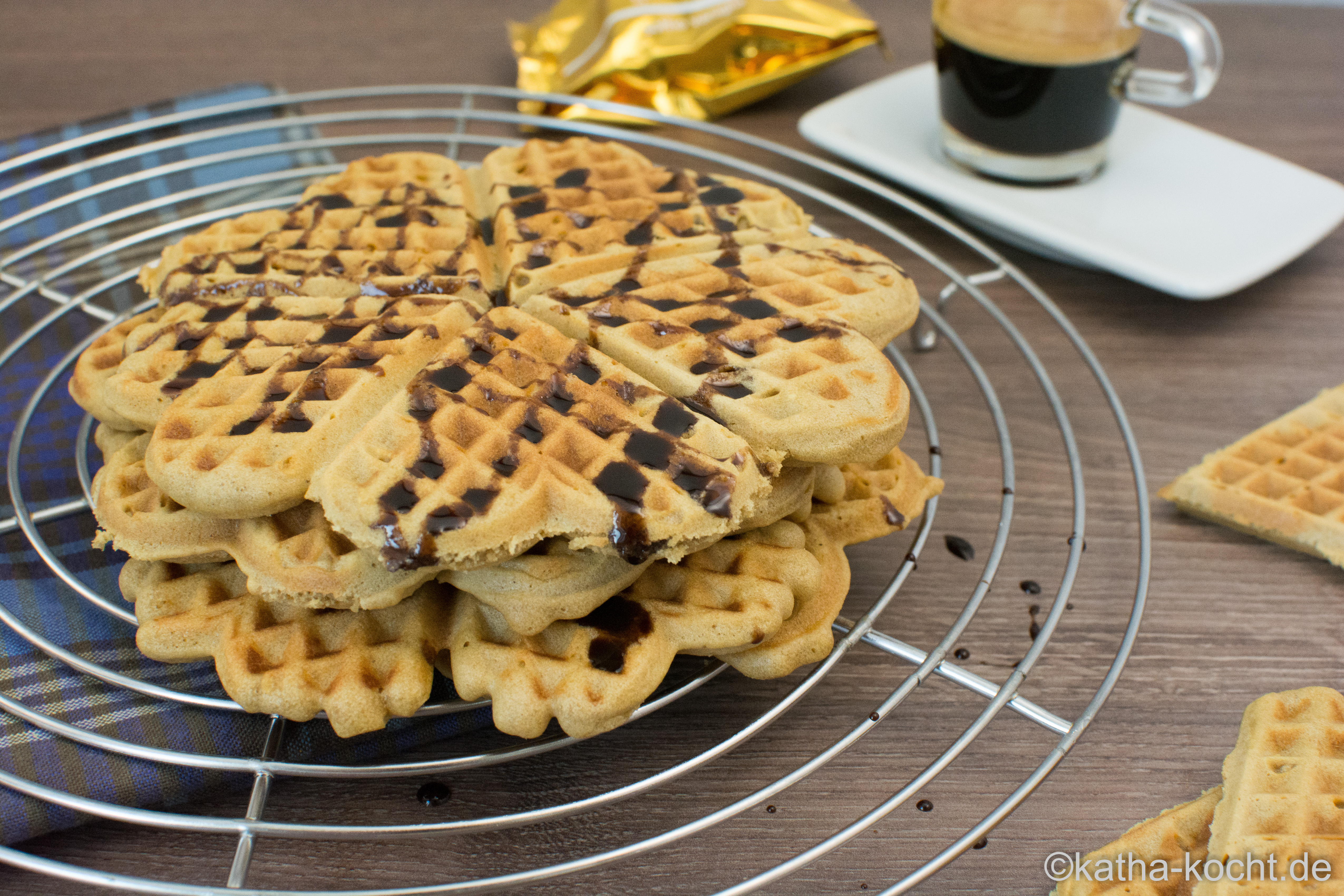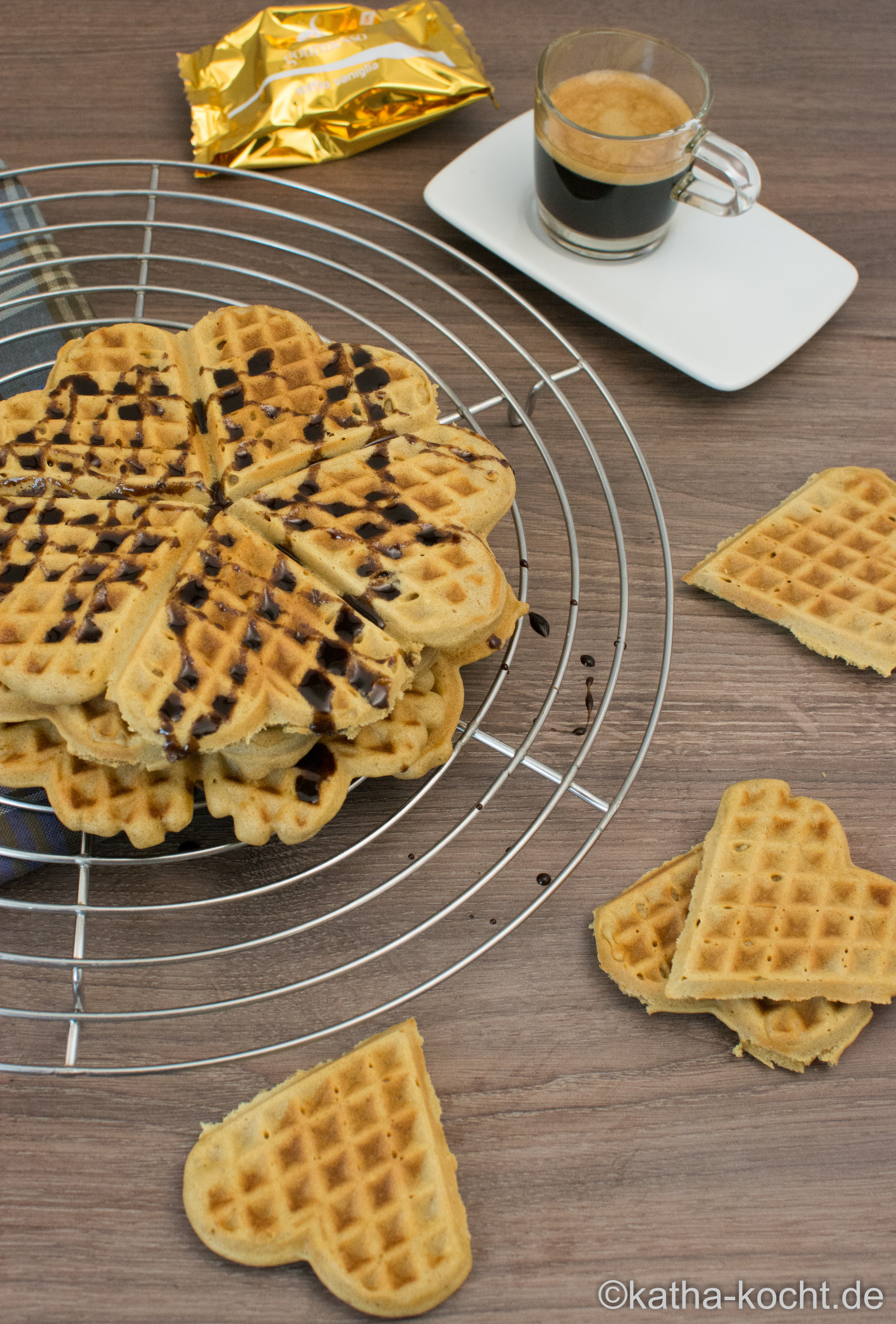 Ich bin ja kein großer Kaffeetrinker, ab und an mal ein Eiskaffee oder ein Cappuccino ist perfekt, aber der morgendliche Kaffee steht nicht auf meinem Plan. Trotzdem koche und backe ich super gerne mit Kaffee und ich liebe den Duft, wenn Bessere Hälfte sich seine Tasse macht. Als ich jetzt gefragt wurde ob ich nicht Lust hätte den Kaffee von Gourmesso** zu testen hatte ich sofort ein paar Rezeptideen im Kopf – und irgendwie hat sich die Lust auf Kaffee Waffeln dann durchgesetzt. Das Schöne an den Kaffeekapseln von Gourmesso ist übrigens, dass der Kaffee nicht nur Fair Trade und teilweise sogar Bio ist, sondern dass die Kapseln in die Nespresso Maschine passen und keine Alu-Cups sind. Trotzdem schaffen sie es noch ein bisschen Günstiger als das Original zu bleiben, ich finde das ist nicht übel. Die Auswahl an Kaffeesorten ist groß und so war die Entscheidung, welchen Kaffee ich für meine Kaffee Waffeln nehme, wirklich nicht einfach. Aber Waffeln und Vanille gehören einfach zusammen, also habe ich mich für den Soffio Vaniglia entschieden, einen Espresso mit feinem Vanille Aroma.
