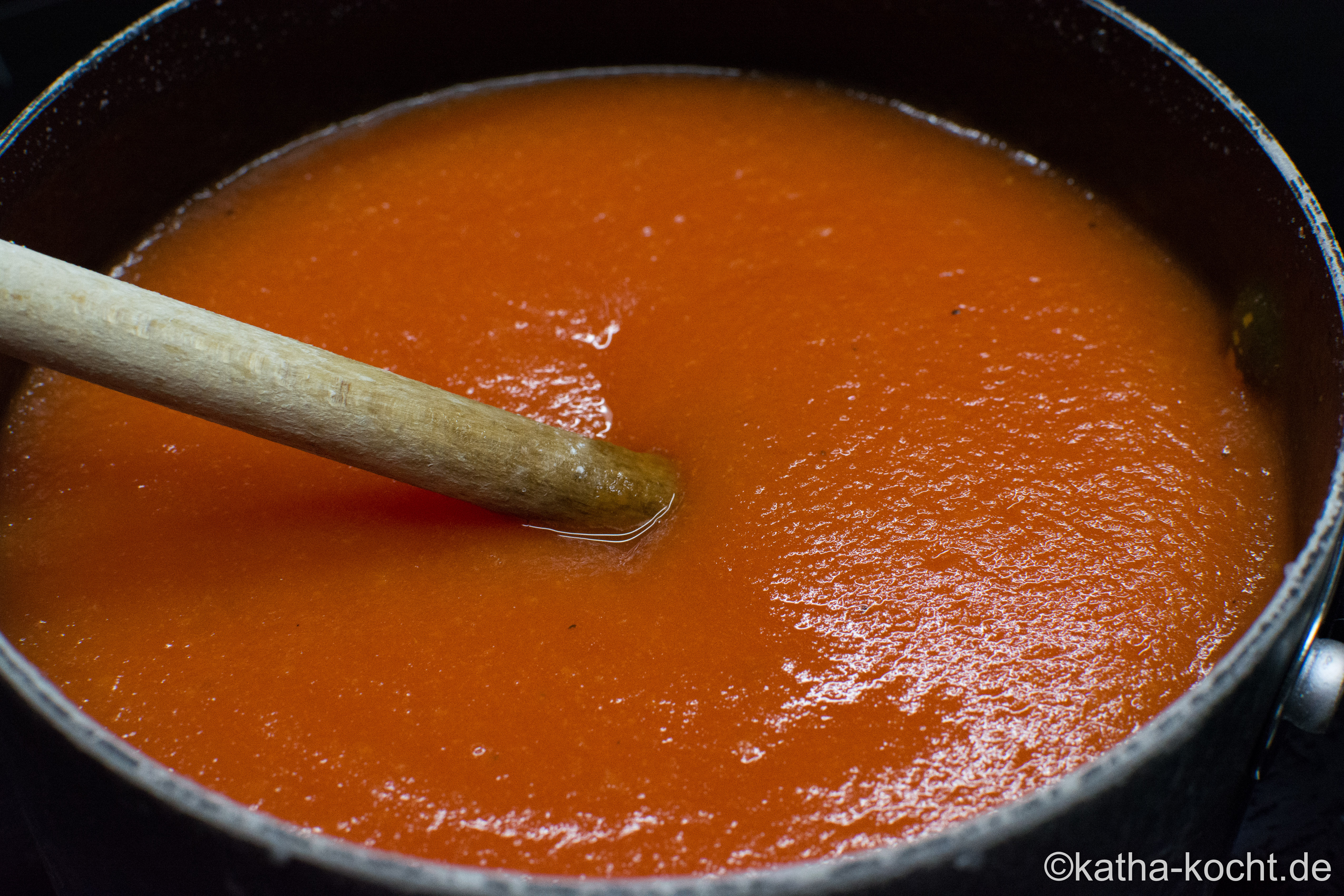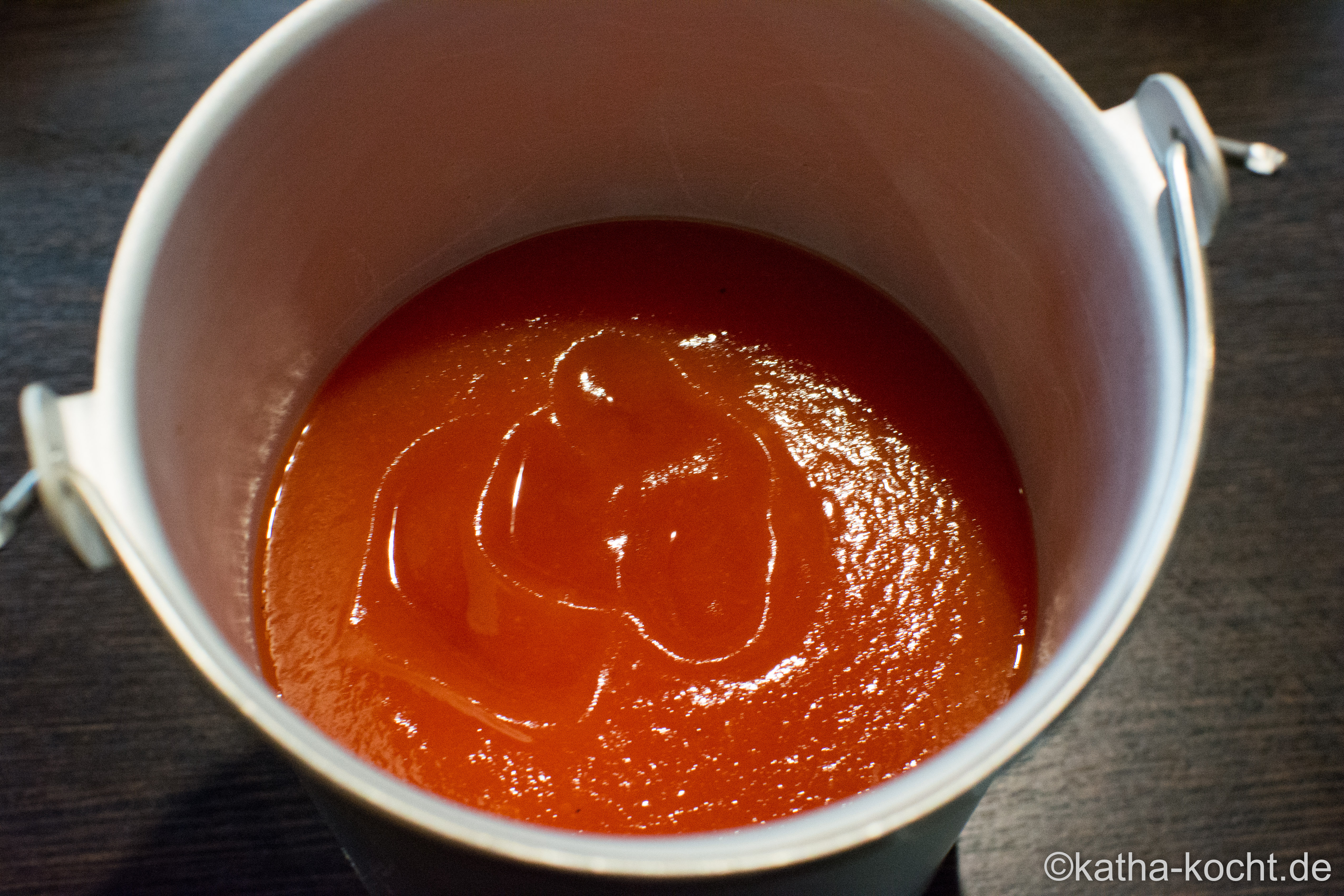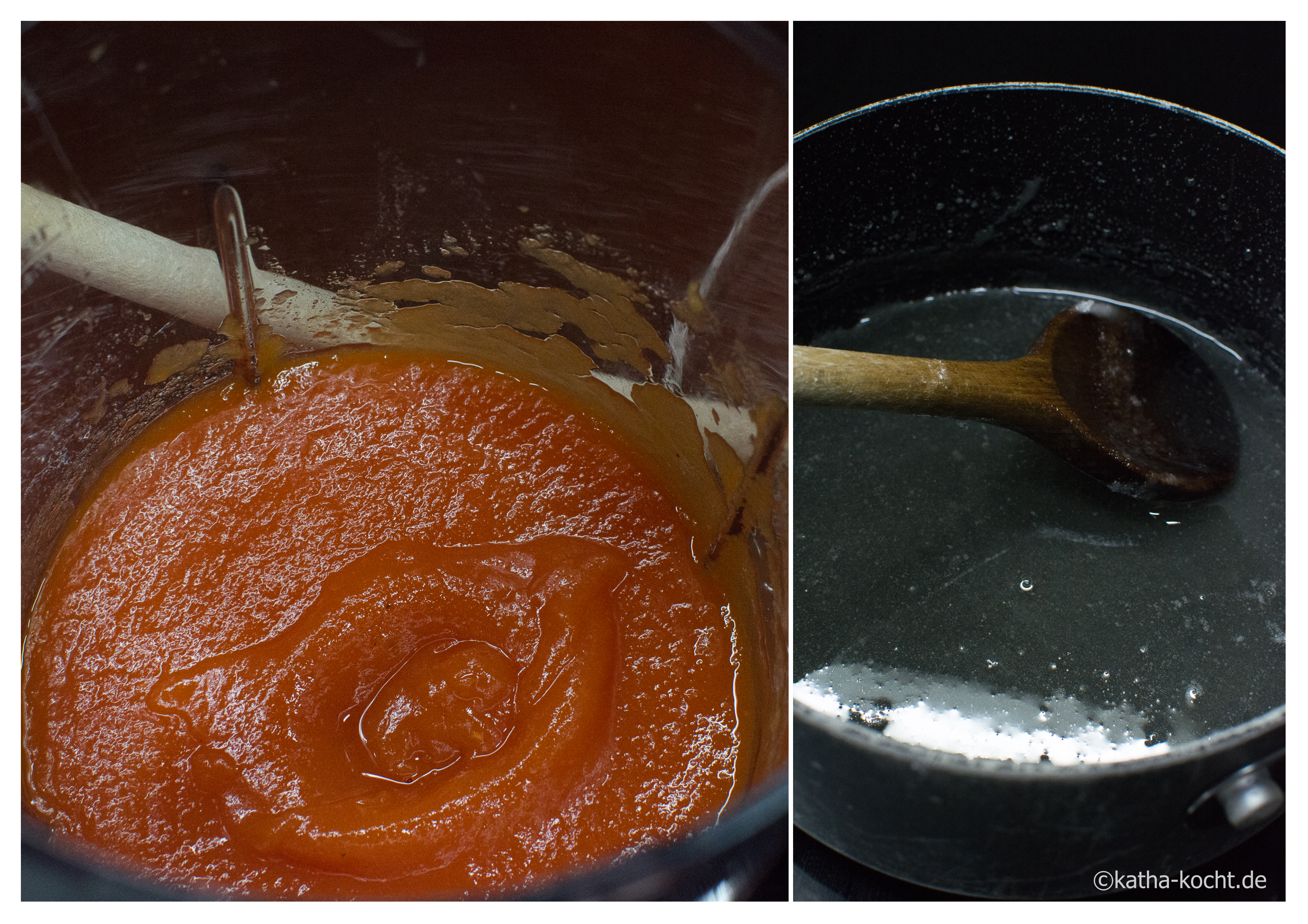 Den Topf mit dem Sirup vom Herd nehmen und kurz etwas abkühlen lassen. Dann das Papayapüree einrühren. Das Ganze im Kühlschrank vollständig durchkühlen lassen, das dauert in etwa 4-6 Stunden.