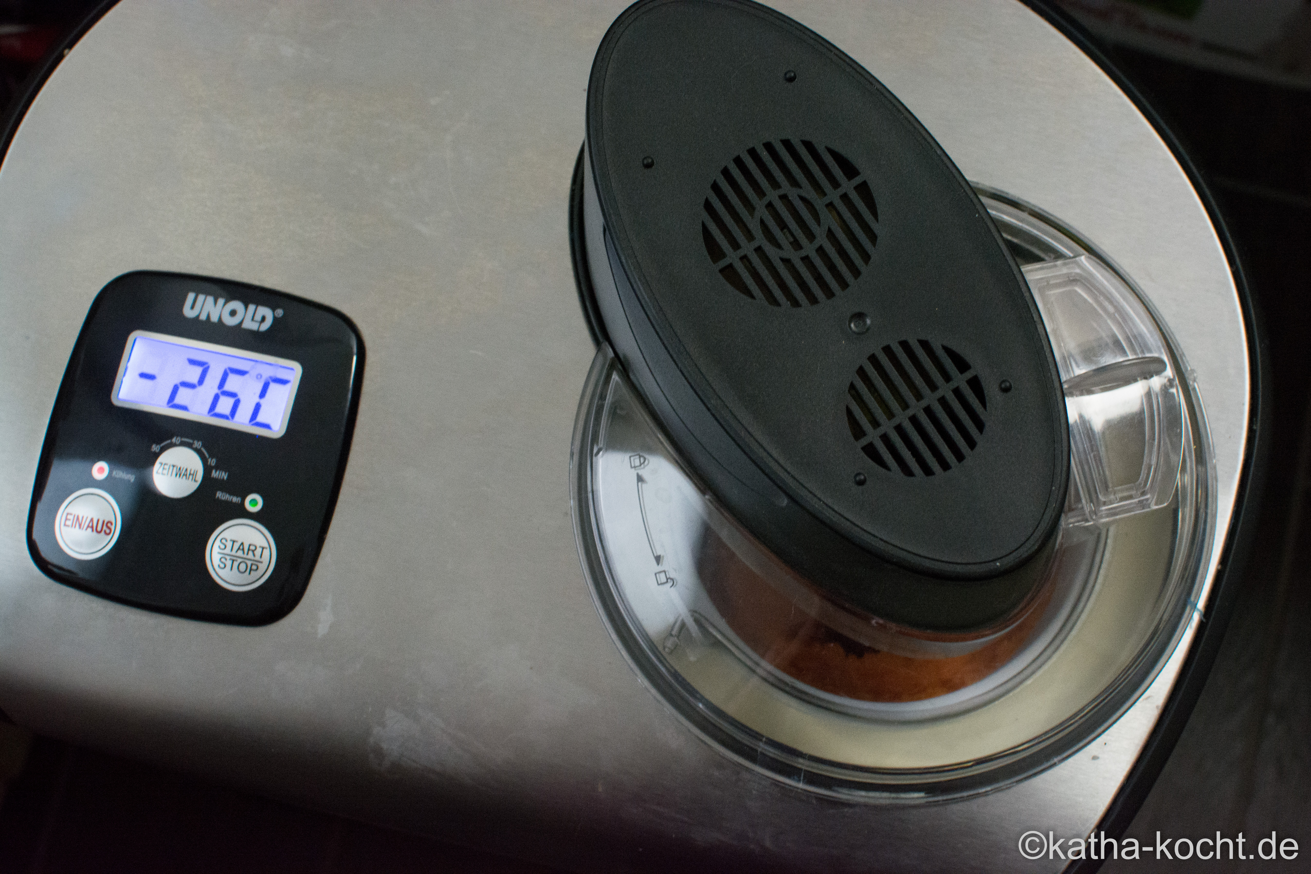Die gekühlte Papayamasse in die Eismaschine* geben.