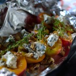 Die Kartoffeln brauchen wie immer am längsten. Ich starte also damit die geviertelten Kartoffeln, die geviertelte Zwiebel und den geschälten Knoblauch zusammen mit etwas Öl und den getrockneten Kräutern auf ein Backblech zu geben. Mit Pfeffer und Salz würzen und ab in den vorgeheizten Ofen damit. Bei 200°C brauchen die Kartoffeln ca. 40 Minuten.