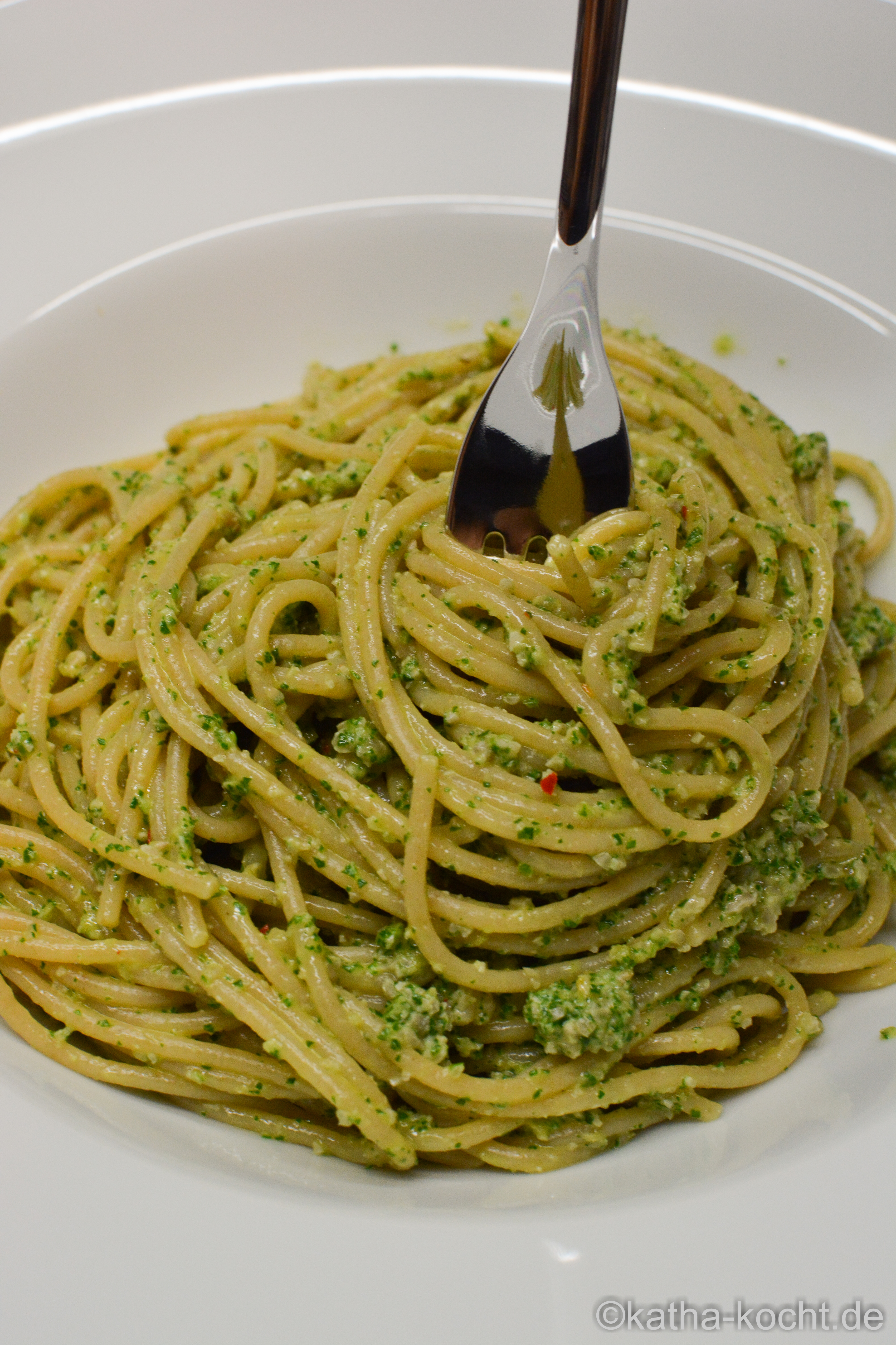 Für Spaghetti mit Pesto könnte ich schwach werden….bin sonst nicht soooo der Nudelfan, aber hier?