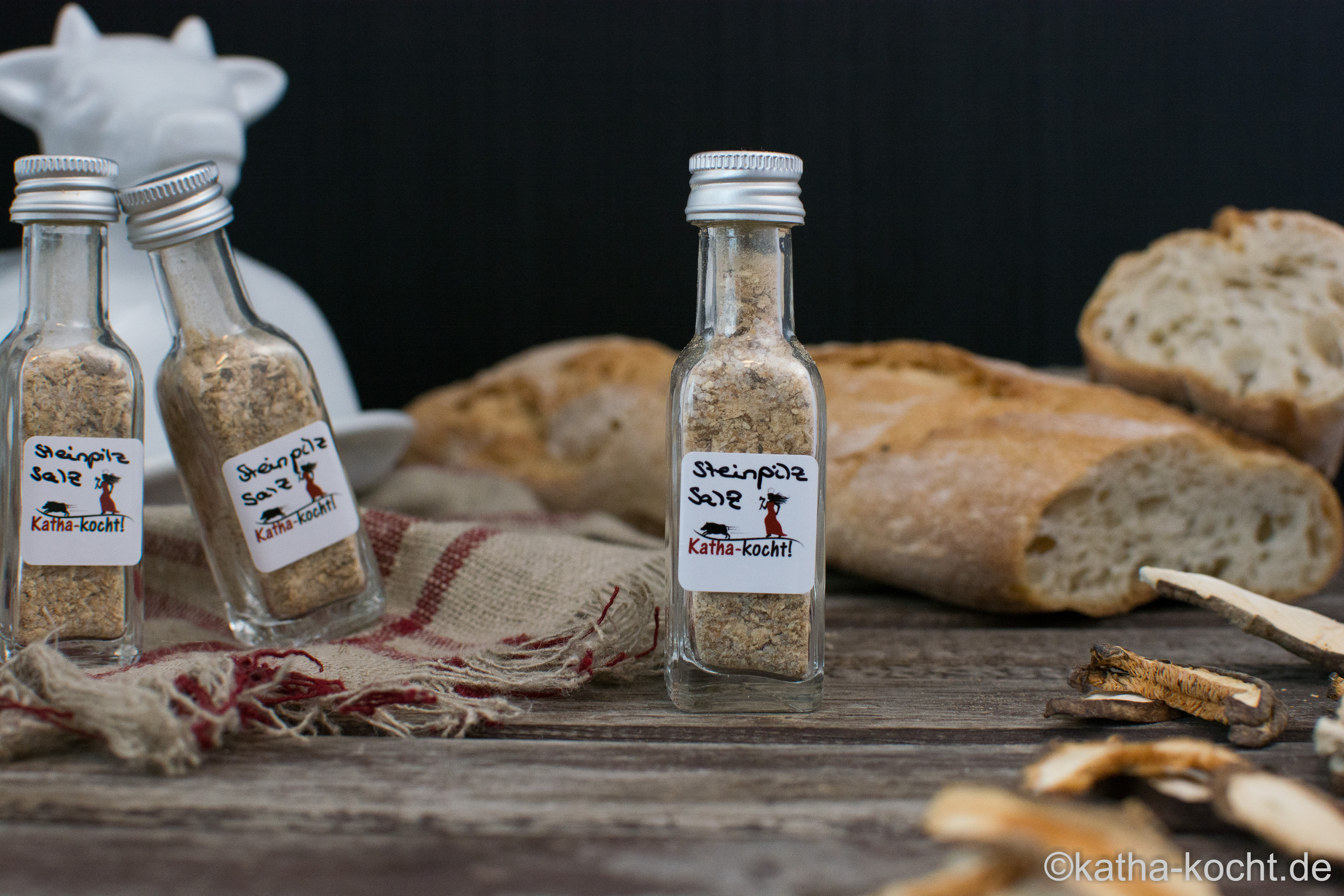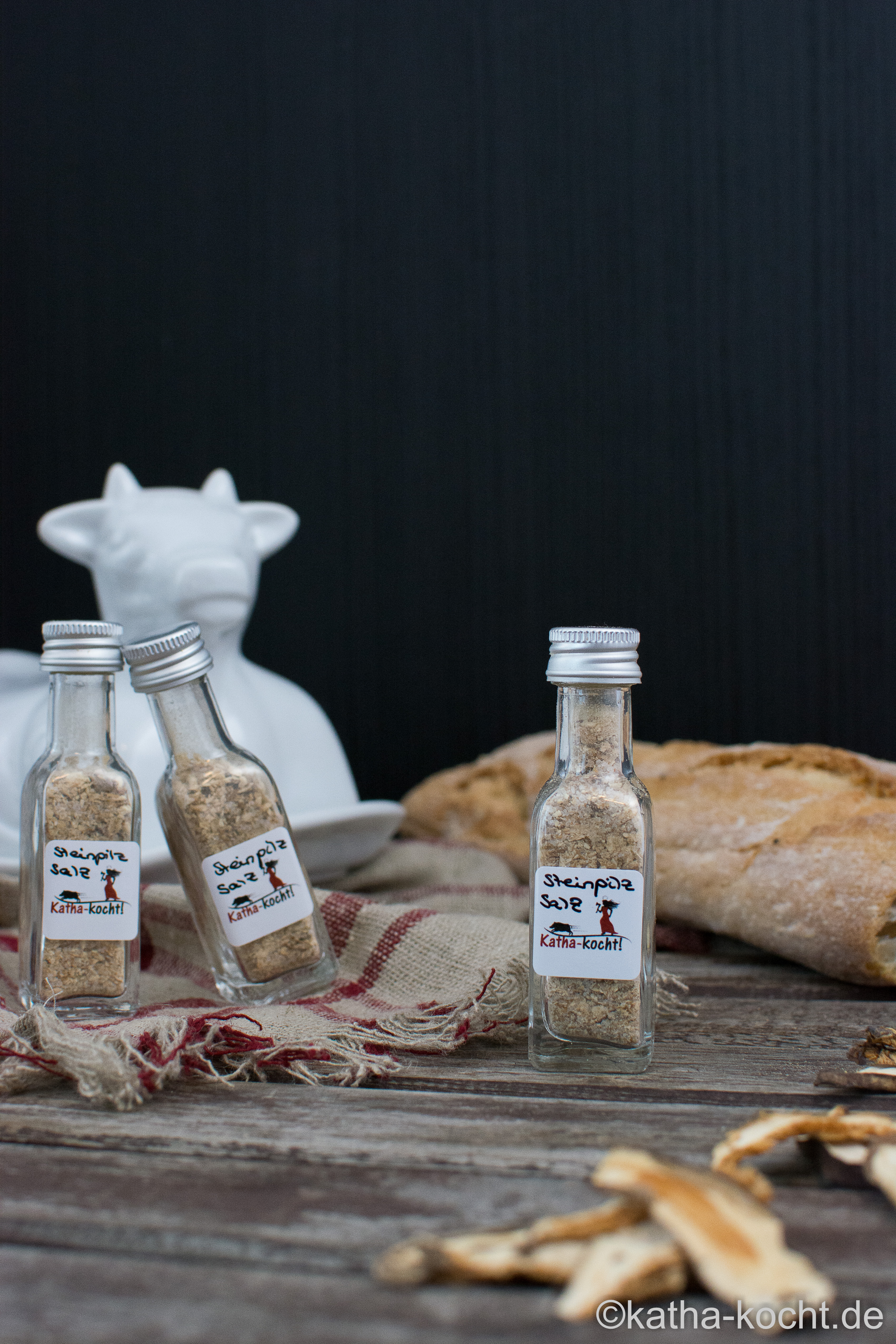 Heute und Morgen habe ich noch ein paar last minute DIY-Geschenkideen für euch – irgendwie fällt einem doch immer in letzter Minuten ein, dass man noch irgendwie eine Kleinigkeit braucht… oder ist das nur bei mir so? Eine schöne Idee ist zum Beispiel dieses Steinpilzsalz. Das ist in 5 Minuten fertig und sieht in einem kleinen Fläschchen oder Gläschen verpackt wirklich hübsch aus. Ihr könnt das Salz auch als „Steinpilzbutter-Kit“ verschenken – dann einfach die doppelte Menge Steinpilze oder nur halb so viel Salz nehmen und ein Zettelchen dazu schreiben, dass 1 EL davon für 100g Butter ausreicht. Mein Tipp zu den Steinpilzen – oft ist Steinpilzbruch etwas günstiger als die schönen großen Scheiben. Und da ihr die Steinpilze ohnehin in feine Brösel verwandelt ist das für eure Zwecke vollkommen ausreichend!