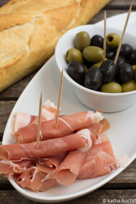 Verschiedene Oliven und Schinken sind ja eigentlich kein Rezept im eigentlichen Sinn, sondern eher eine ausgewählte Beilage die zusammen mit vielen anderen Tapas-Leckereien angerichtet wurde. Der Vollständigkeit halber habe ich sie aber als kleine Inspiration mit erwähnt.