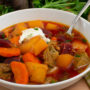 Am Wochenende habe ich die restlichen Karotten, Kohlrabi, Petersilie und rote Bete Knollen im Gemüsebeet geerntet. Die waren die perfekte Grundlage für einen leckeren Eintopf. Und da in ein paar Tagen Weihnachten ist und man im Winter ohnehin ab und an Braten isst habe ich hier auch gleich die passende Idee was ihr mit den Resten zaubern könnt – mein winterlicher rote Bete Eintopf mit Bratenresten eignet sich nämlich ganz wunderbar um nach einem herzhaften Essen mit allem drum und dran einen etwas leichteren Tag einzulegen.